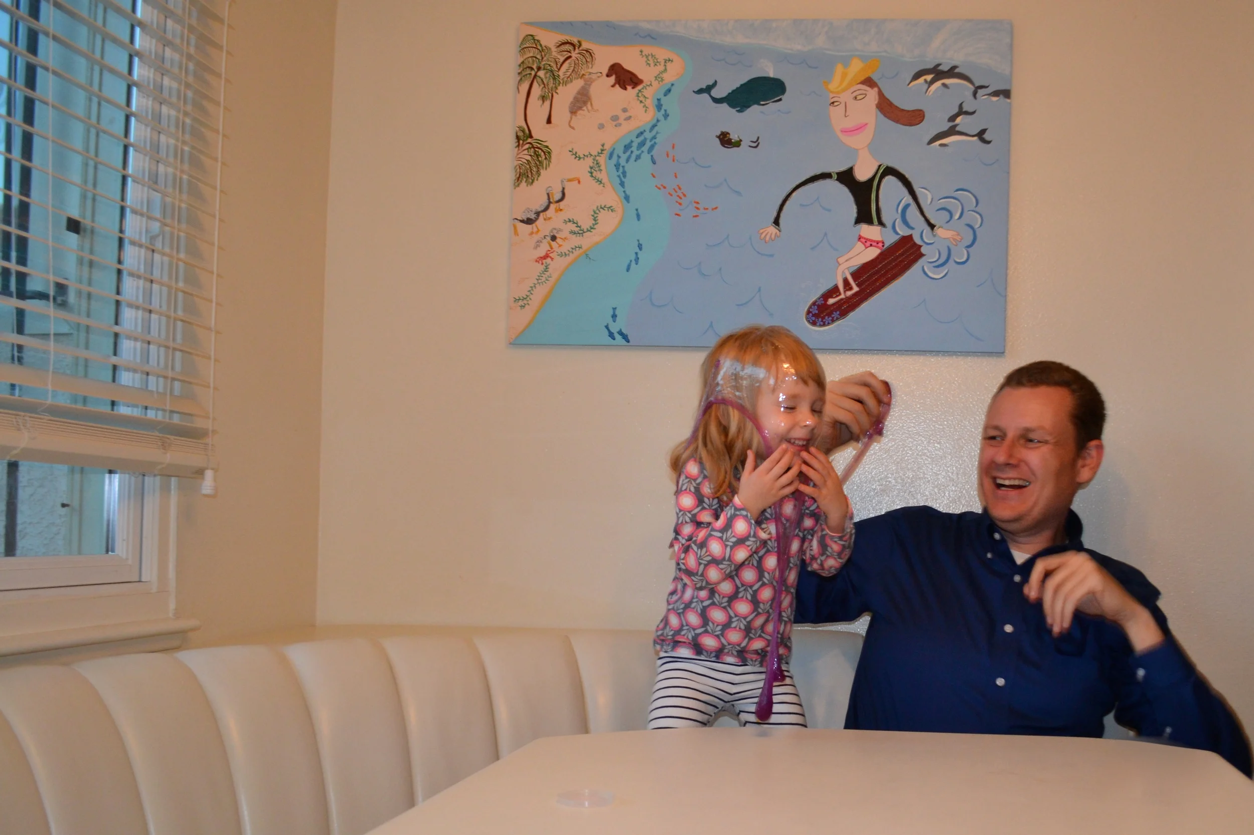 Daddy got slime for the kids--green for Bubs, purple sparkle for Sissy.