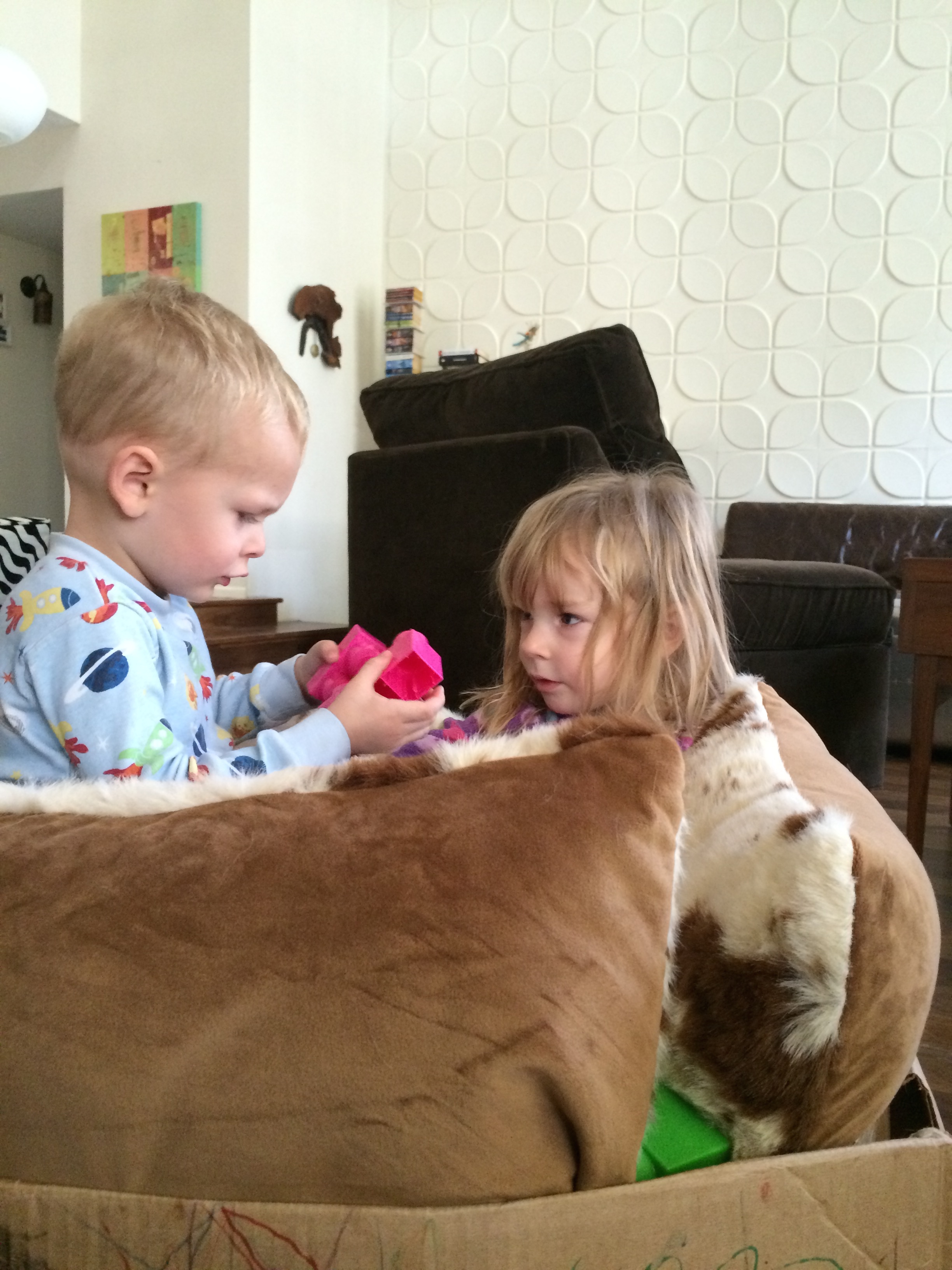 The kids spent HOURS last week coloring this box, then pretending it was a spaceship and taking trips to the moon. They made it comfy with our new couch cushions, added in all their legos, and brought pretend snacks for the trip.