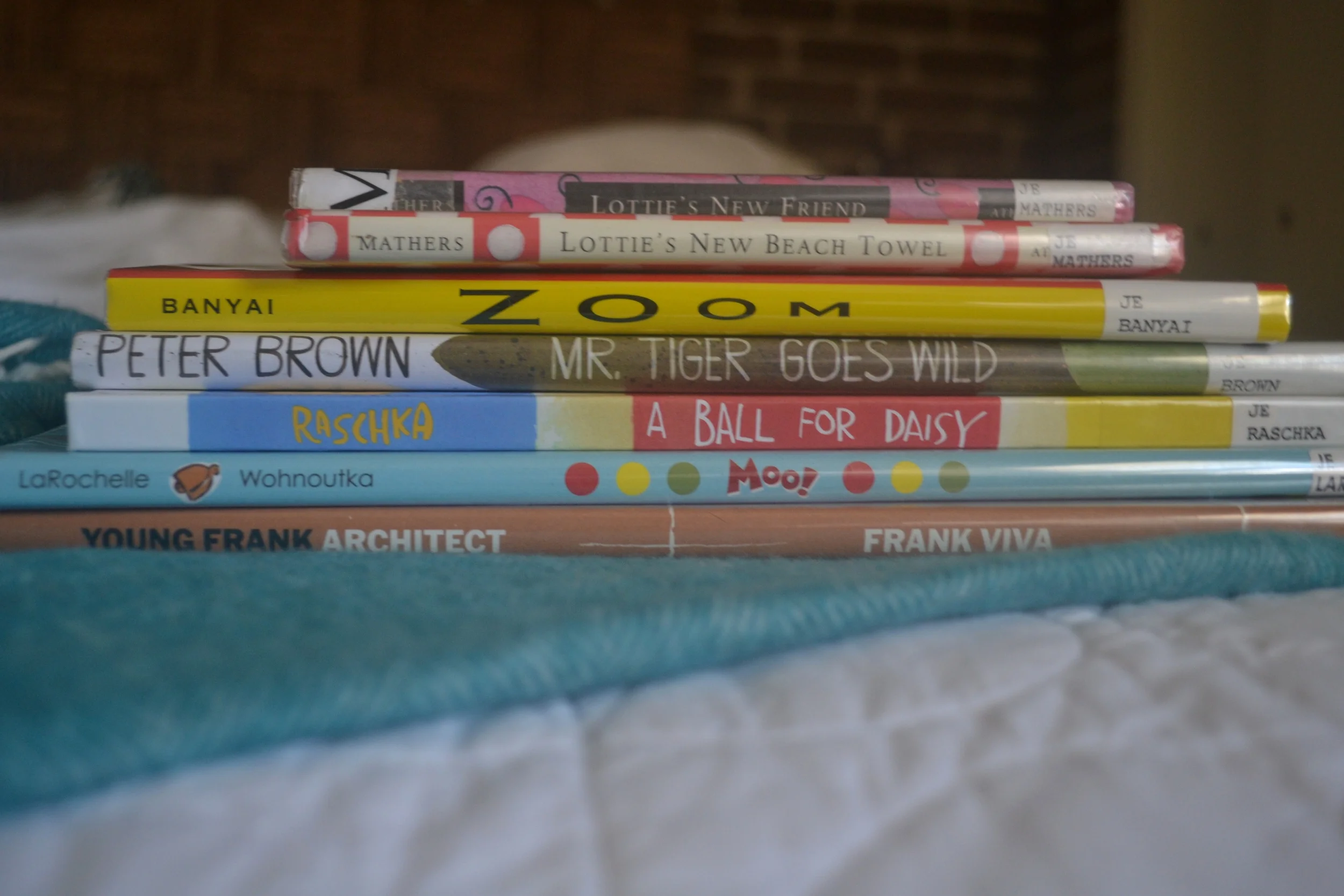 - Lottie's New Beach Towel and Lottie's New Friend--We got the "Beach Towel" book first...it was written by a friend of a friend and it's very quiet, I wasn't sure I liked it at first but the pictures are so great (they look like the Oregon coast) and the story is so sweet and after I took the first book back to the library the kids went around the house quoting lines from it so I knew I had to get it back (plus others)