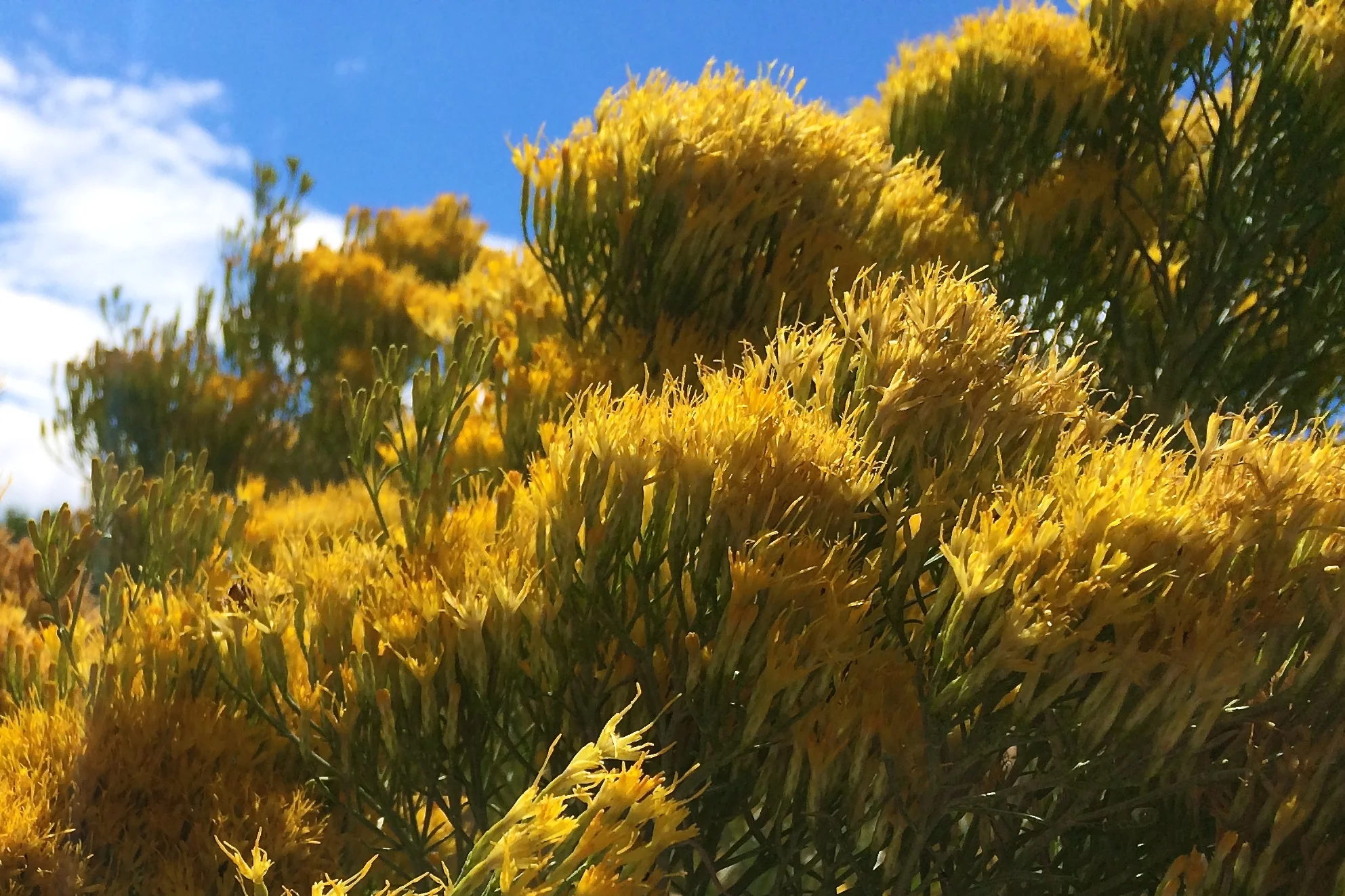 Bees buzzing everywhere today at the "sand playground" where we had our picnic lunch, especially in and around these yellow flowers. Grapes and cheese crackers and hard boiled eggs and strawberries in our red picnic basket, the sun warm on our skin. And these conversations amongst the kids, as they climbed high on the monkey bars: