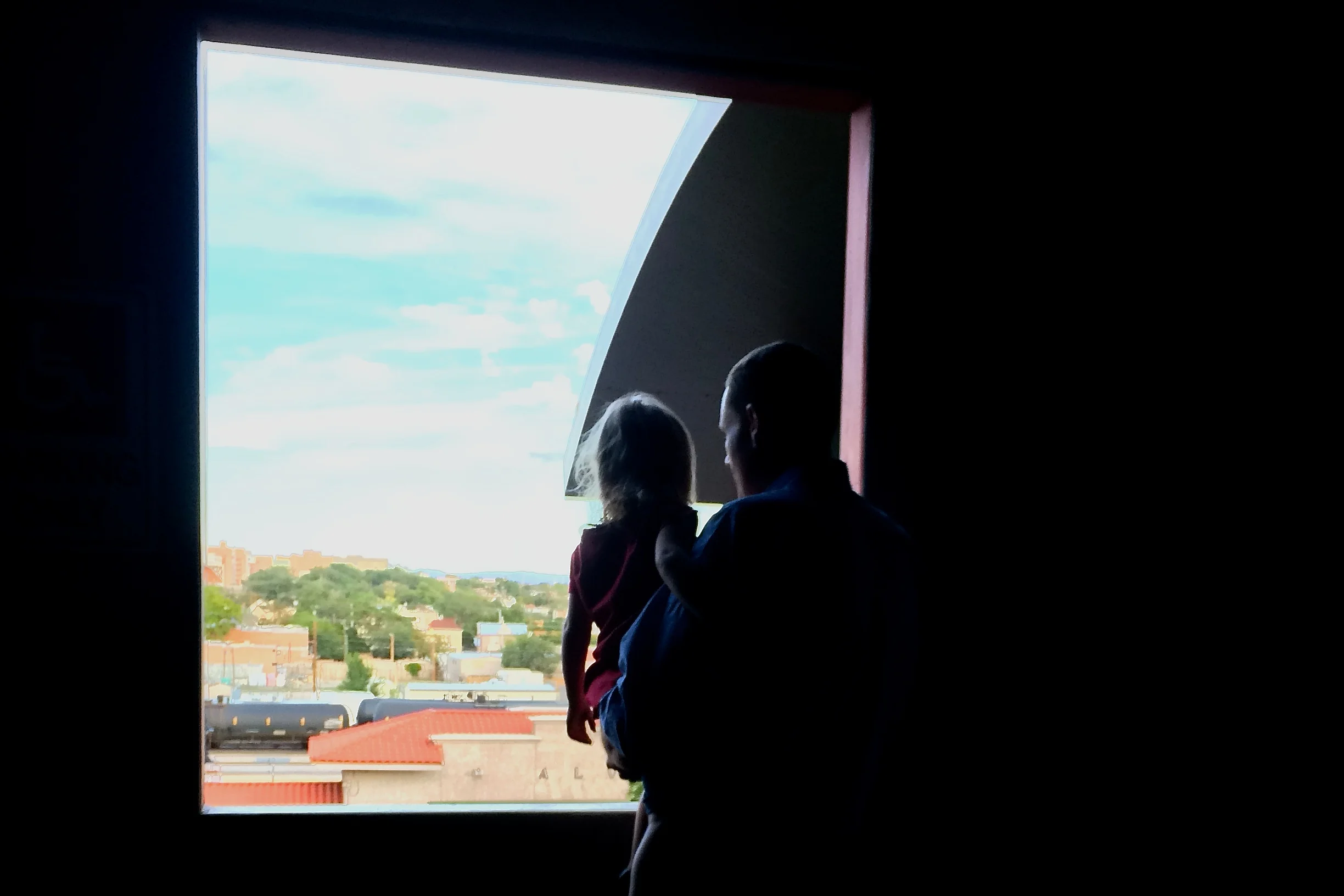 Daddy and Sissy • Checking Out Trains • Parking Garage • 4th Floor
