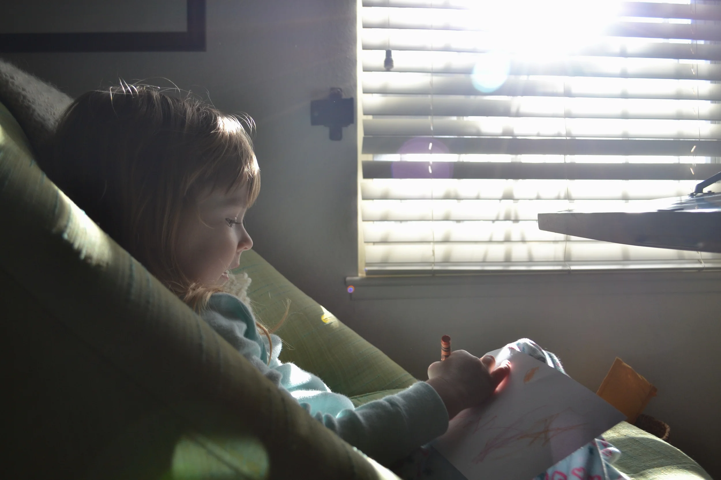 Sis, Coloring Her Weekly Picture for Grammy and Papa