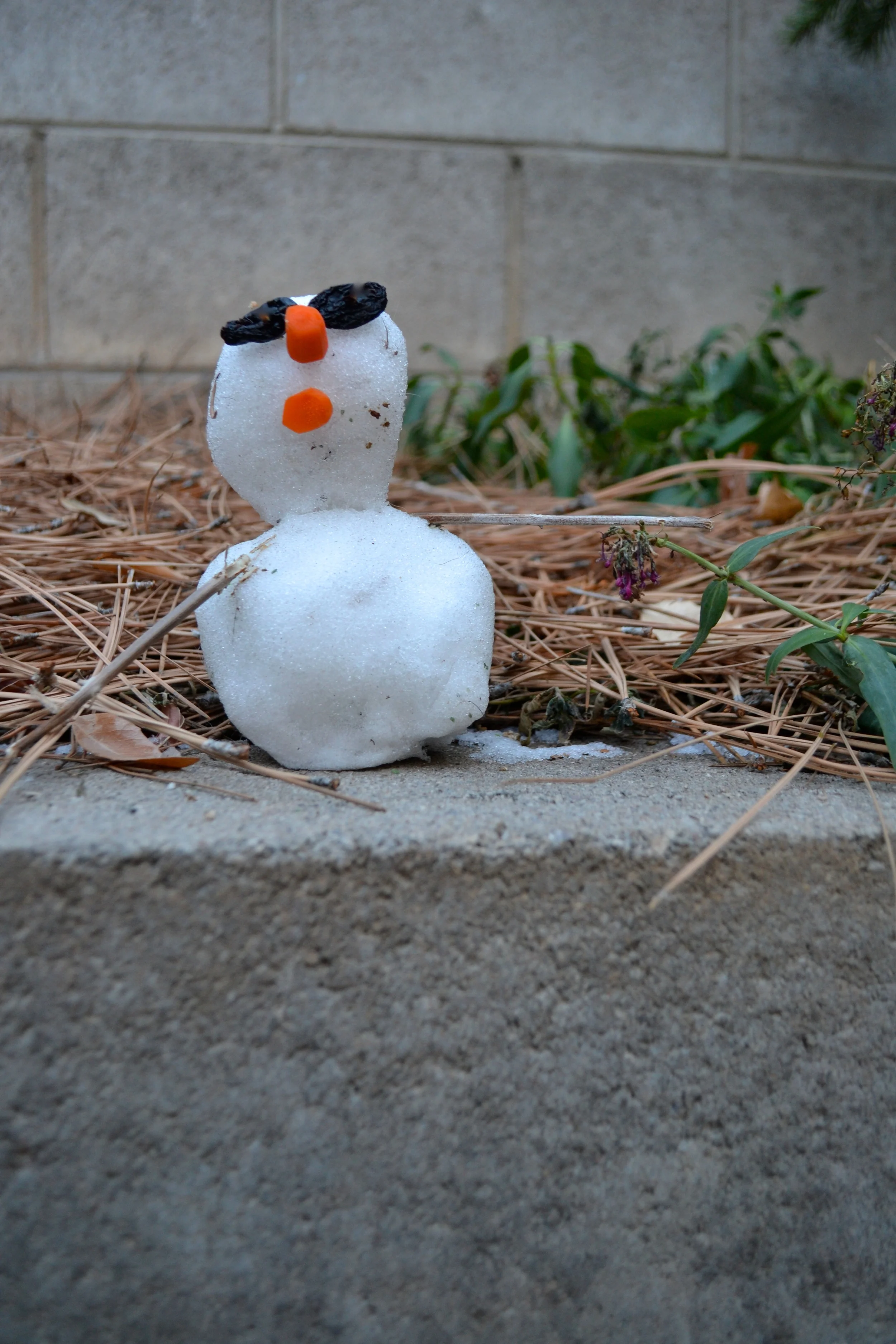 New Mexico Cool Jan 5 Written By Kristen The fact that there was only a skiff of snow didn't stop the kids and their Me-Ma from building a snowman. Who cares if you're only four inches tall if you look this cool? No snowman ever made kids happier.XO Kristen
