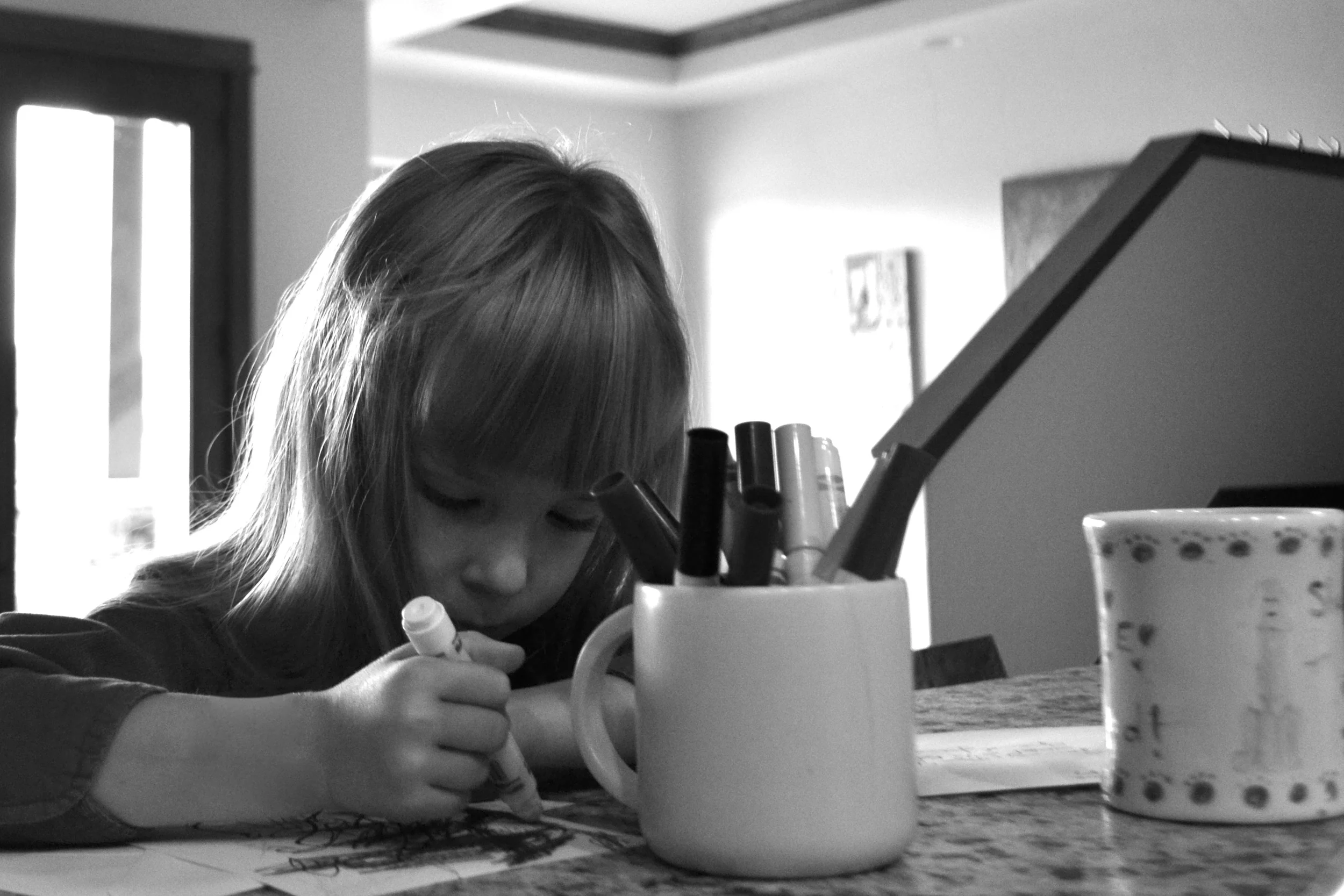- Sis spending a looooooong time today at the breakfast bar, making sure her rainbows for Grammy and Papa were just perfect