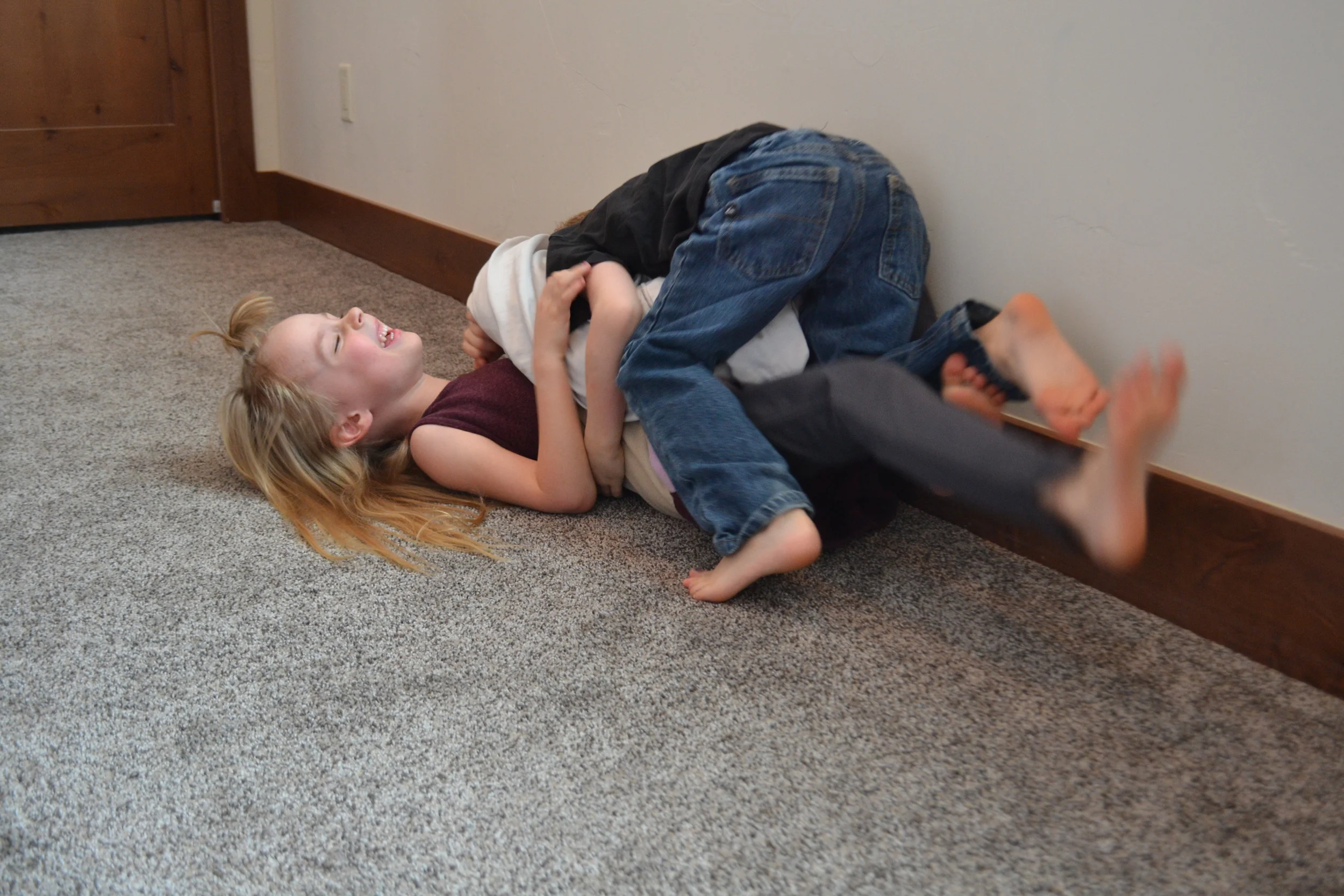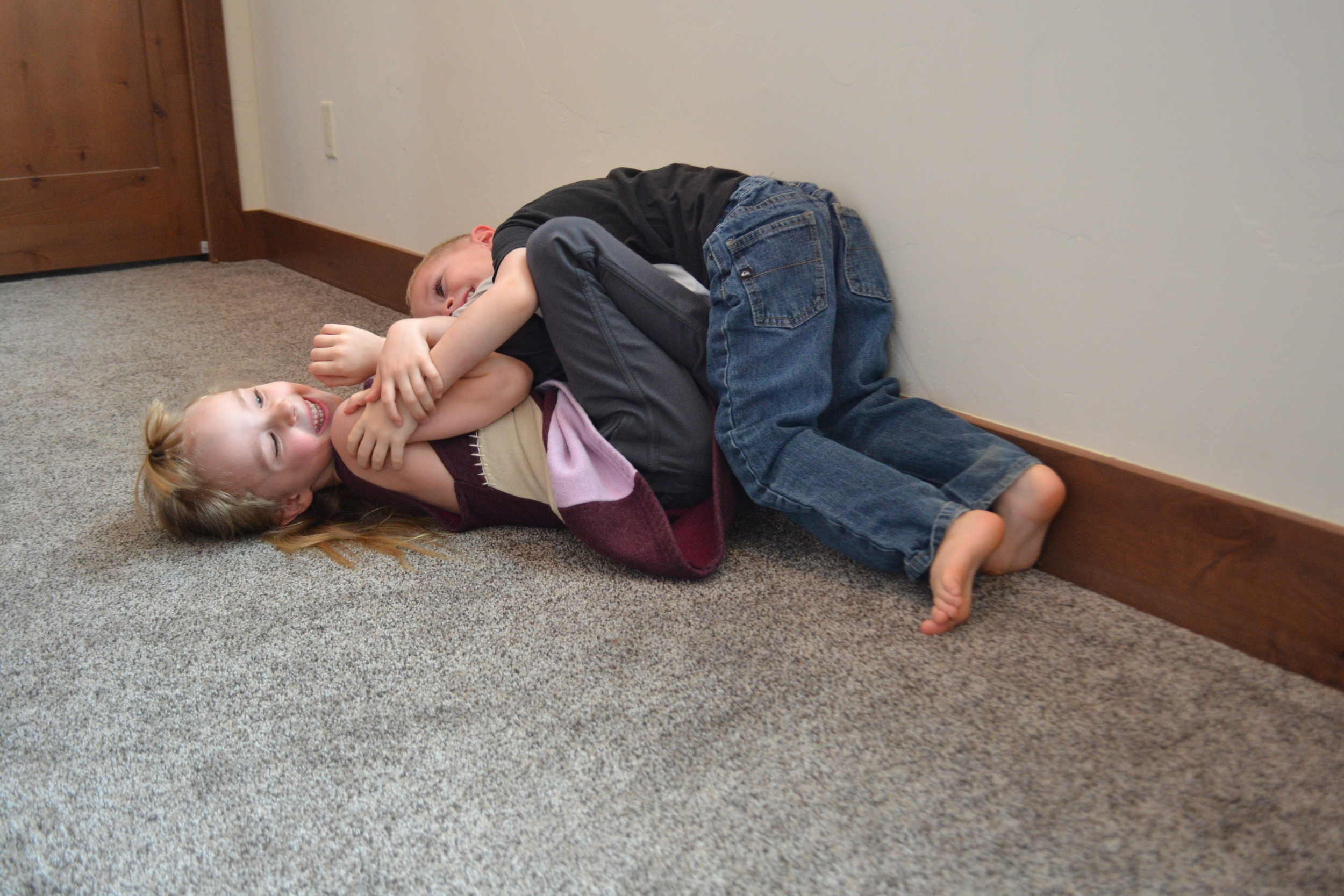- These two cuties playing beautifully together today, including this wrestling match...