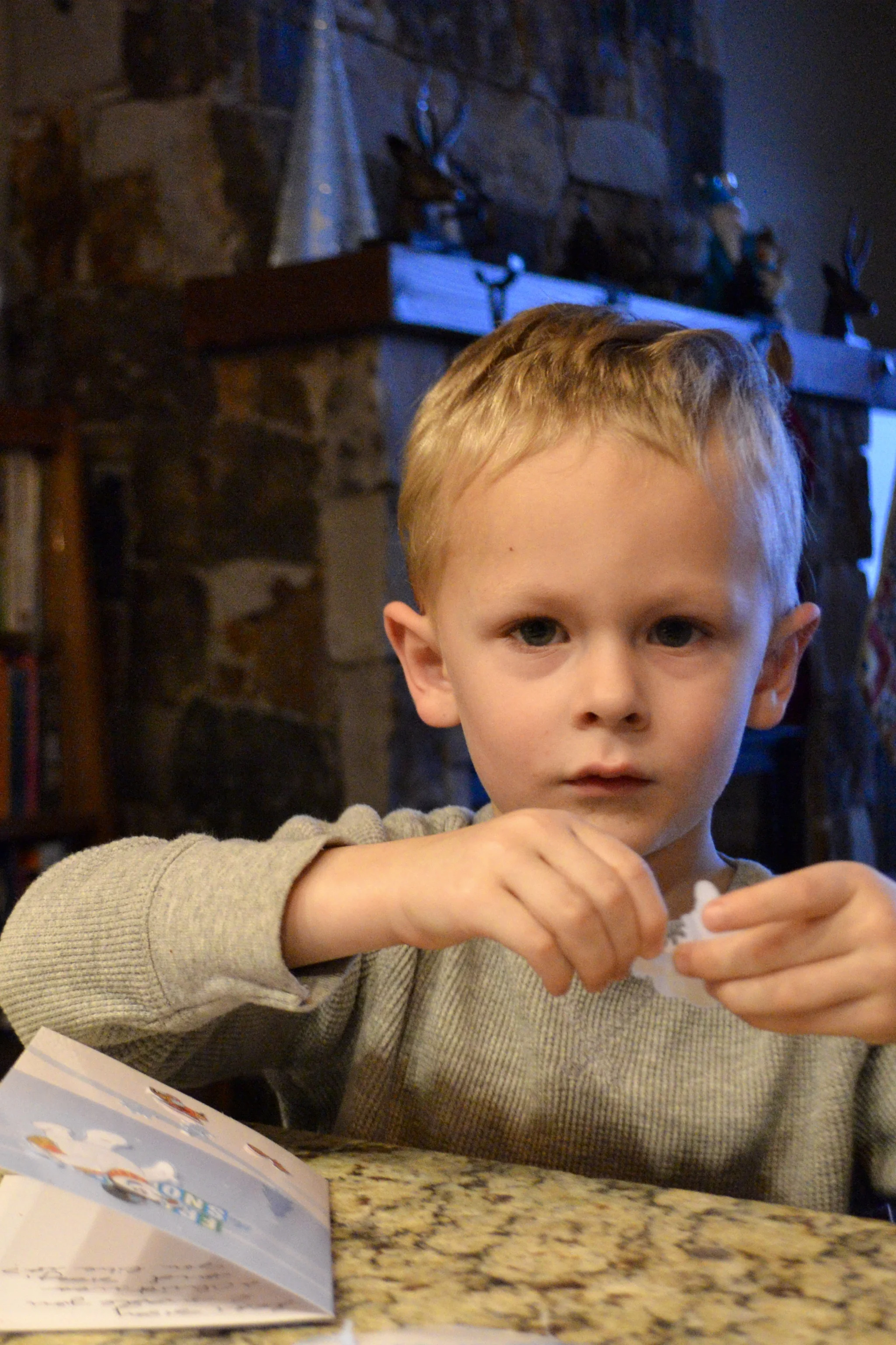 - Luke getting up before Sis from naps (truth be told, he didn't nap at all)...and I set him up with stickers, and what did he want to make? An Xmas card for his Sis...so sweet...