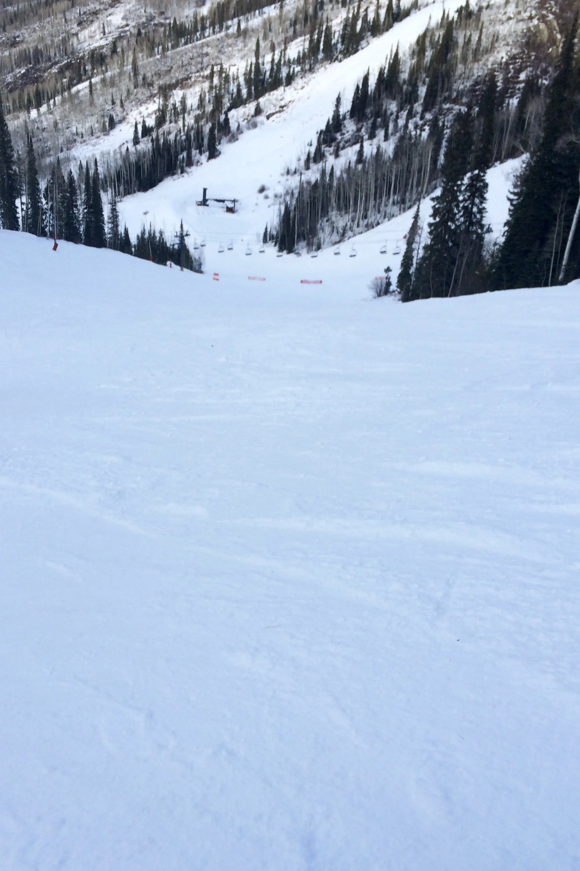 Second day on the mountain...it was a bit inconsistent today with some icy and bare patches, but when it was good it was gooooood...like this...one of my last runs of the day...all to myself...love it. One of the guys Jeff works with was telling me today 2:30's a good time to get on the mountain, because a lot of people are getting off...