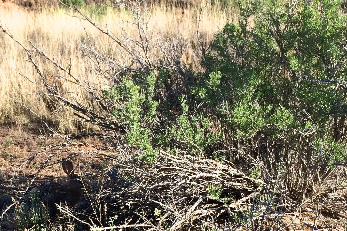 Sunny and warm this afternoon, kids and I on a hike on the Monument, empty plastic apple juice container for Luke, empty oatmeal box for Zo, coins and rocks making noise with shaking. Whistles around their necks. What great little hikers they're getting to be, hiking itself interspersed with the drawing rainbows in the dirt and adding new rocks to their noisemakers and Luke put a rock in his pocket for Grammy and on the way back a brown baby bunny darting across the path and then standing stock-still in the bushes, letting us get a good look. We saw a second bunny on the trail and then two more driving back to Grammy and Papa's for dinner.