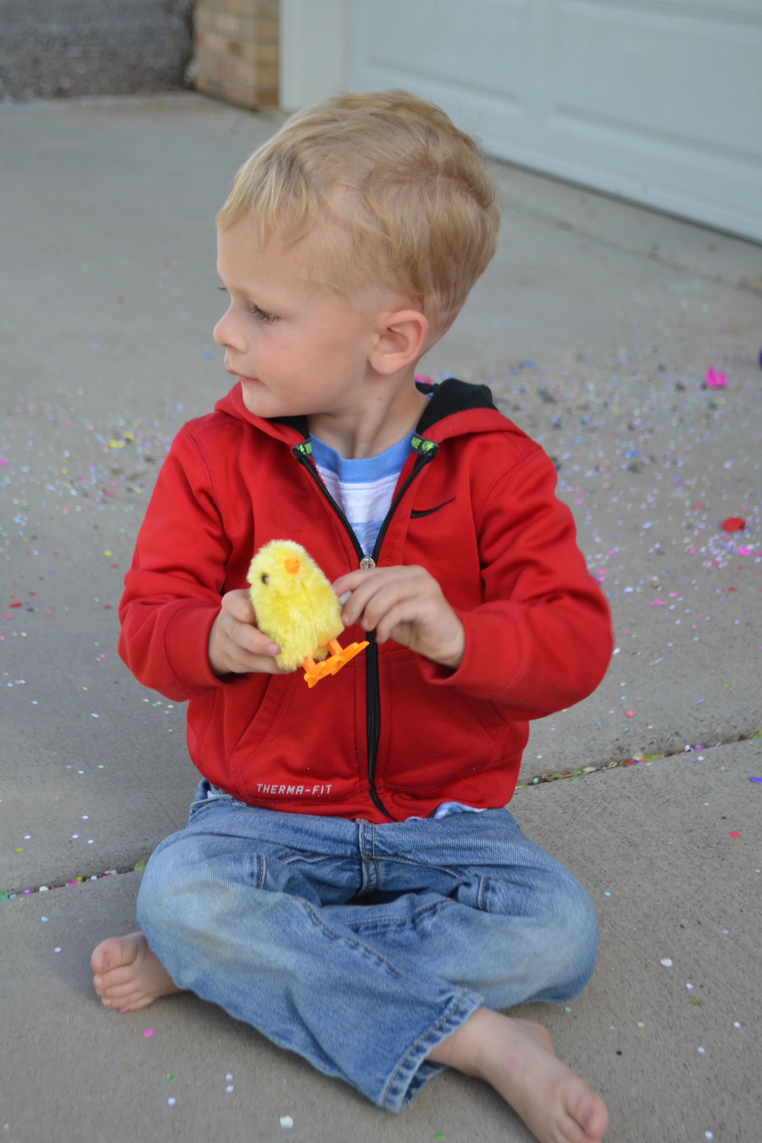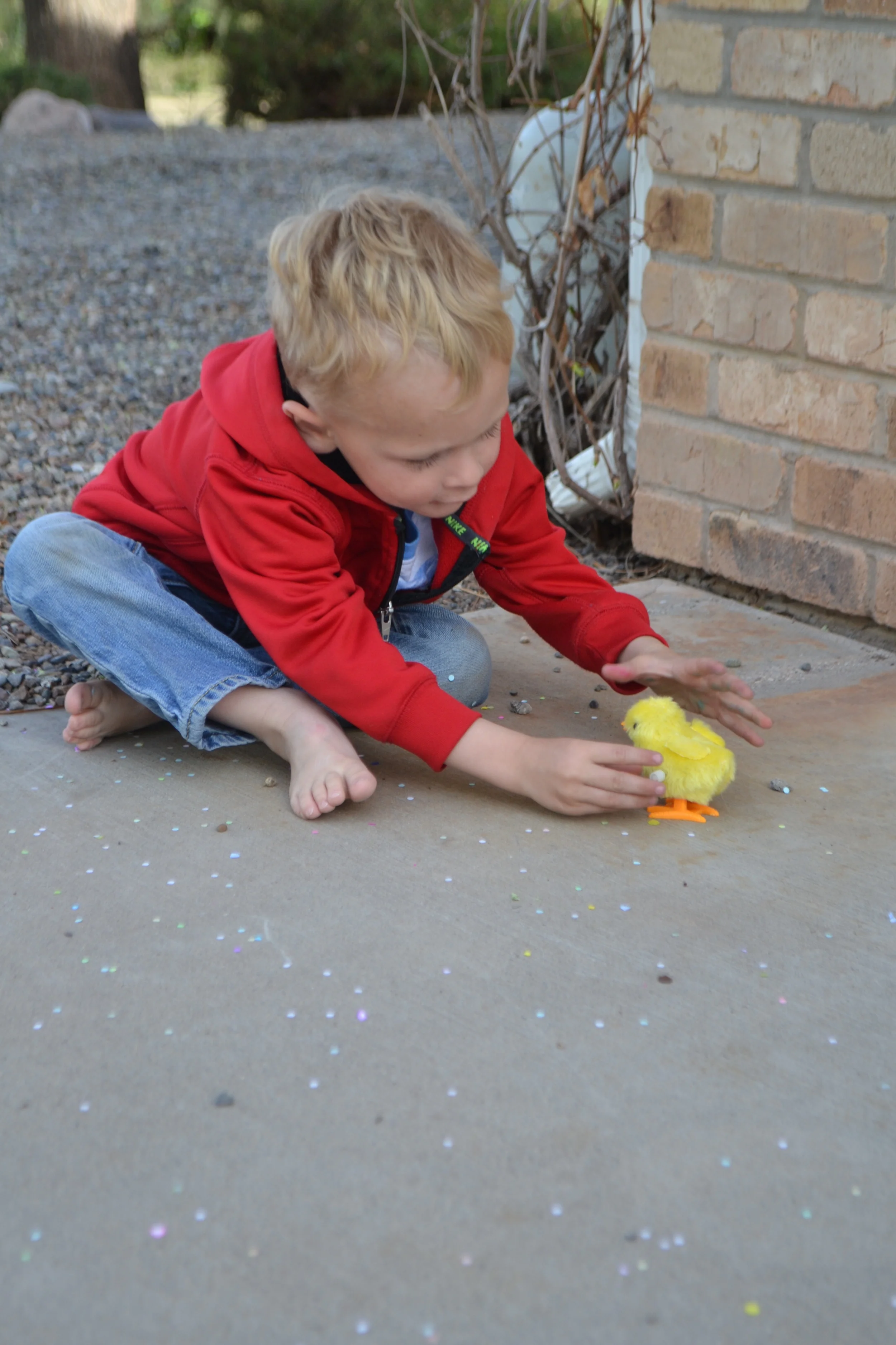 Luke Plays With the Chick the Easter Bunny Brought Him