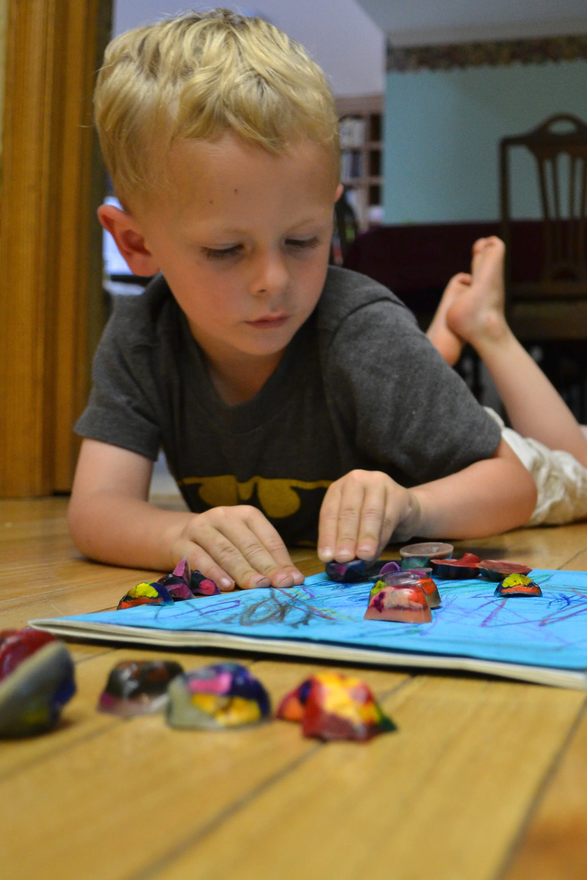 My good friend Ann has been doing childcare for me mornings while I work. She is fantastic with the kids. Every day she brings something new for them to play with/do...yesterday it was to melt scraps of crayons in the sun, then put them in molds and into the freezer. The result was these beautiful multi-colored crayons in the shapes of flowers and hearts and stars...seriously cool...