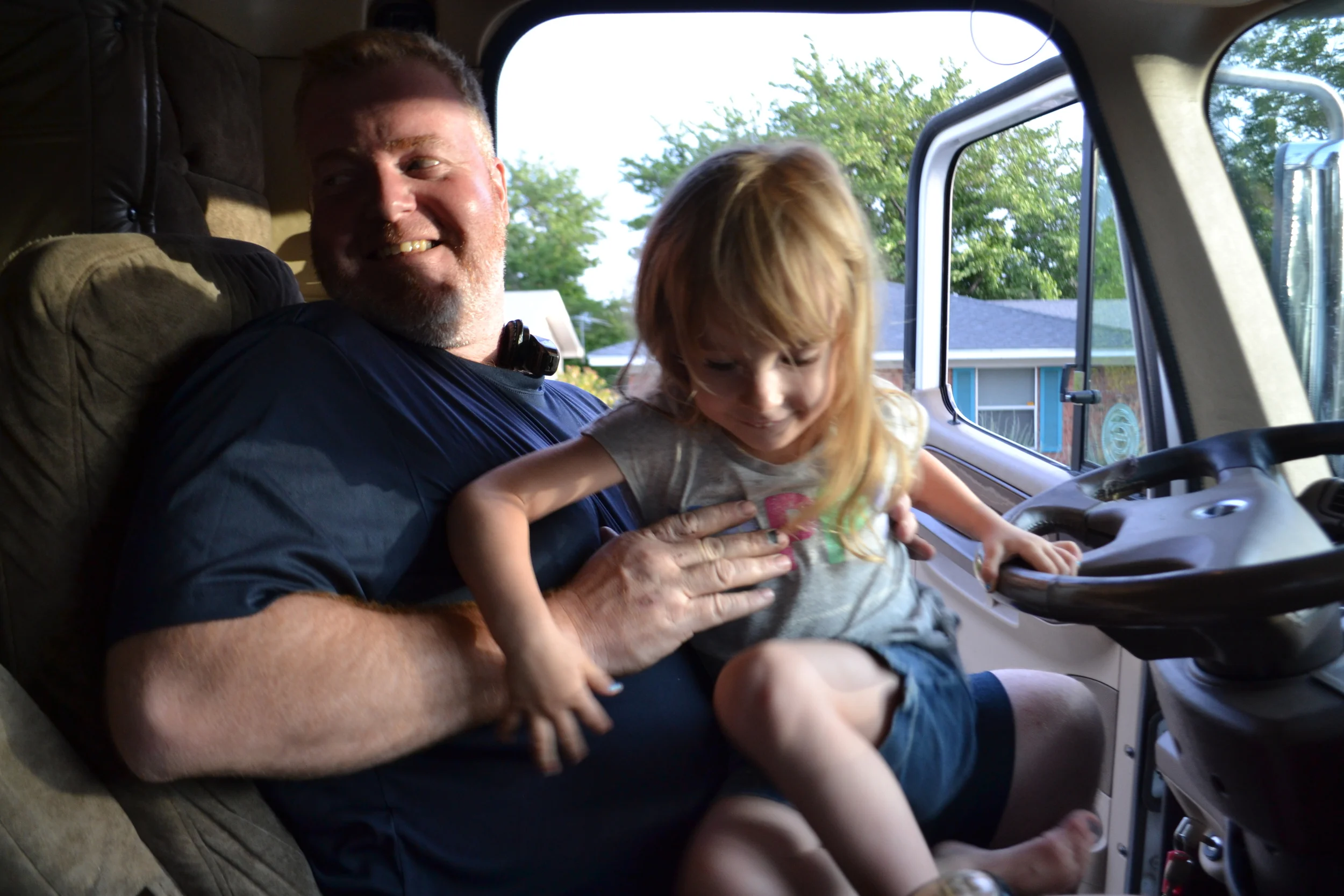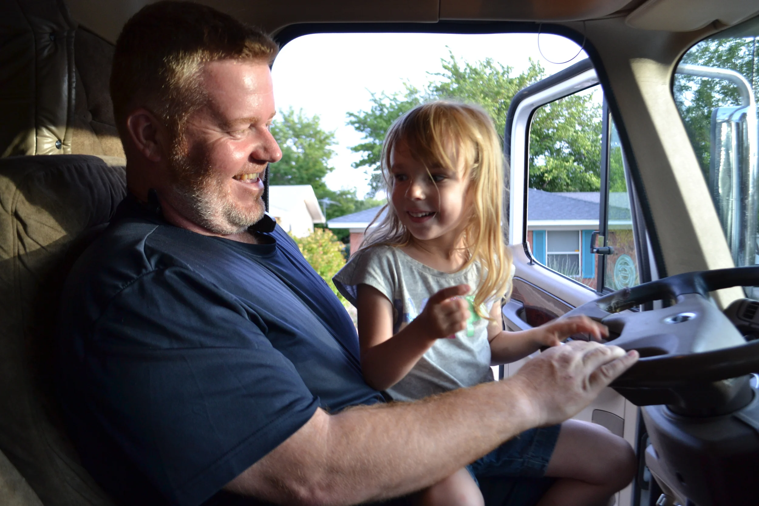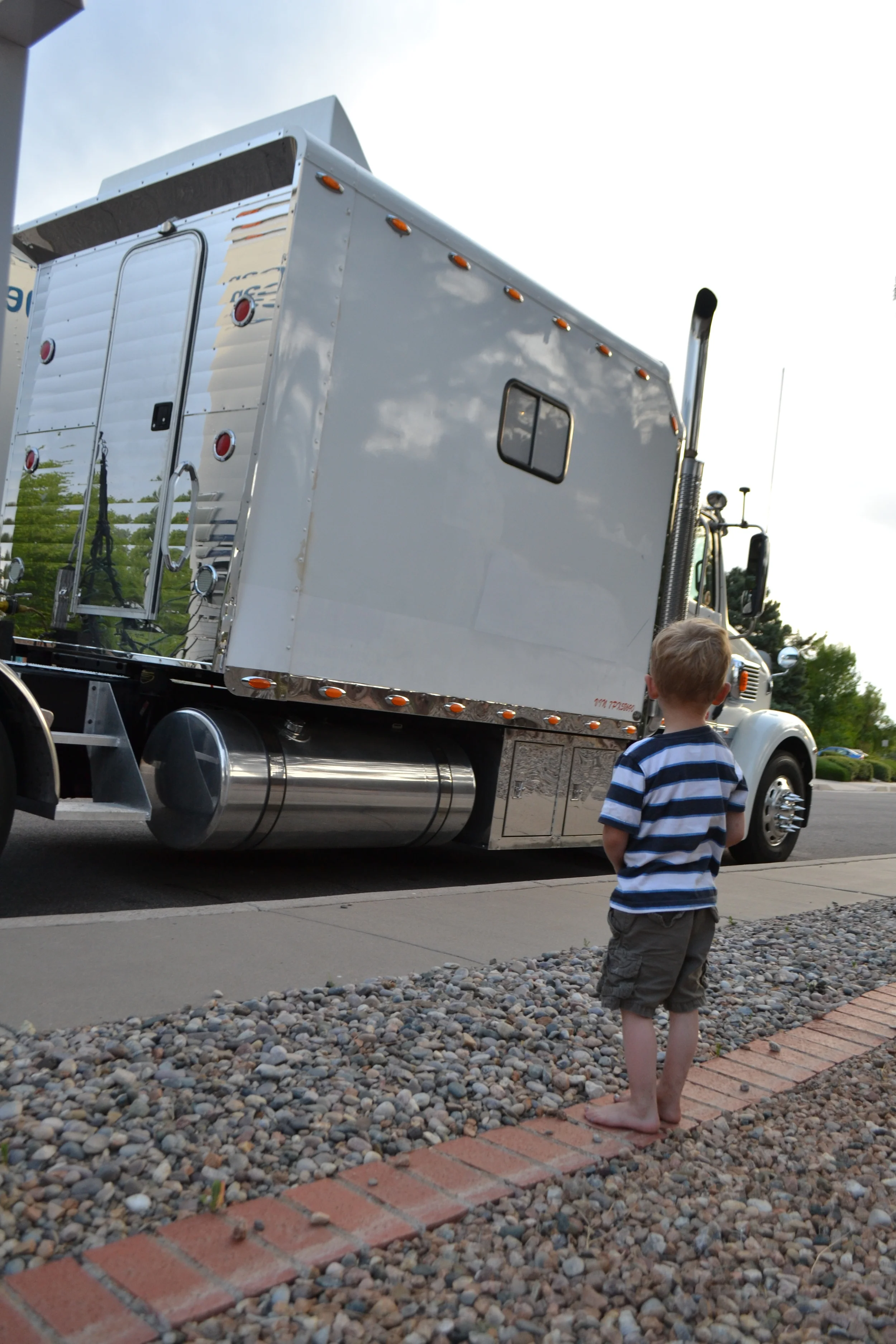 John let Zo make BIG noise with the semi's horn. Luke didn't want to (he covered his ears and shook his head no), or he could have, too.