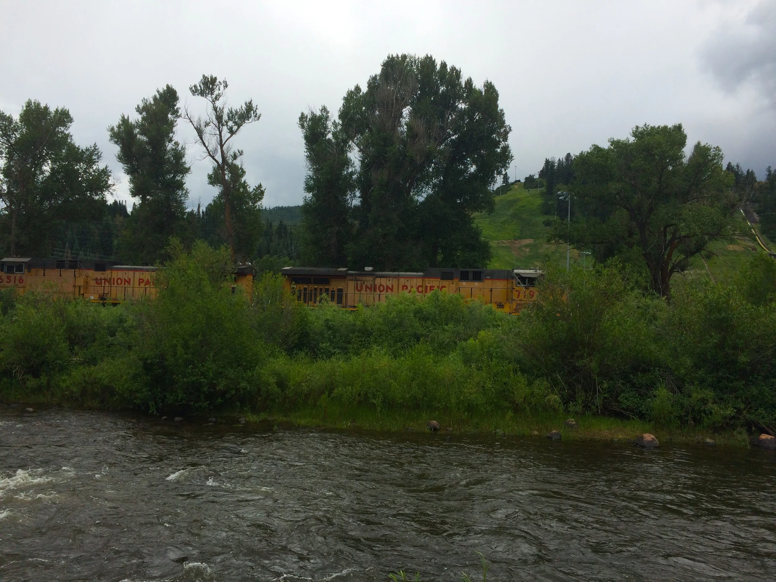 Last Friday Jeff and I went for sushi on the river with Howlsen Hill back behind, the light beautiful. It was our first date night in months. The next day with Ben and Charlotte and the kids we sat at Sunpies and got the same view...with the added bonus of a train coming through...the kids were thrilled...