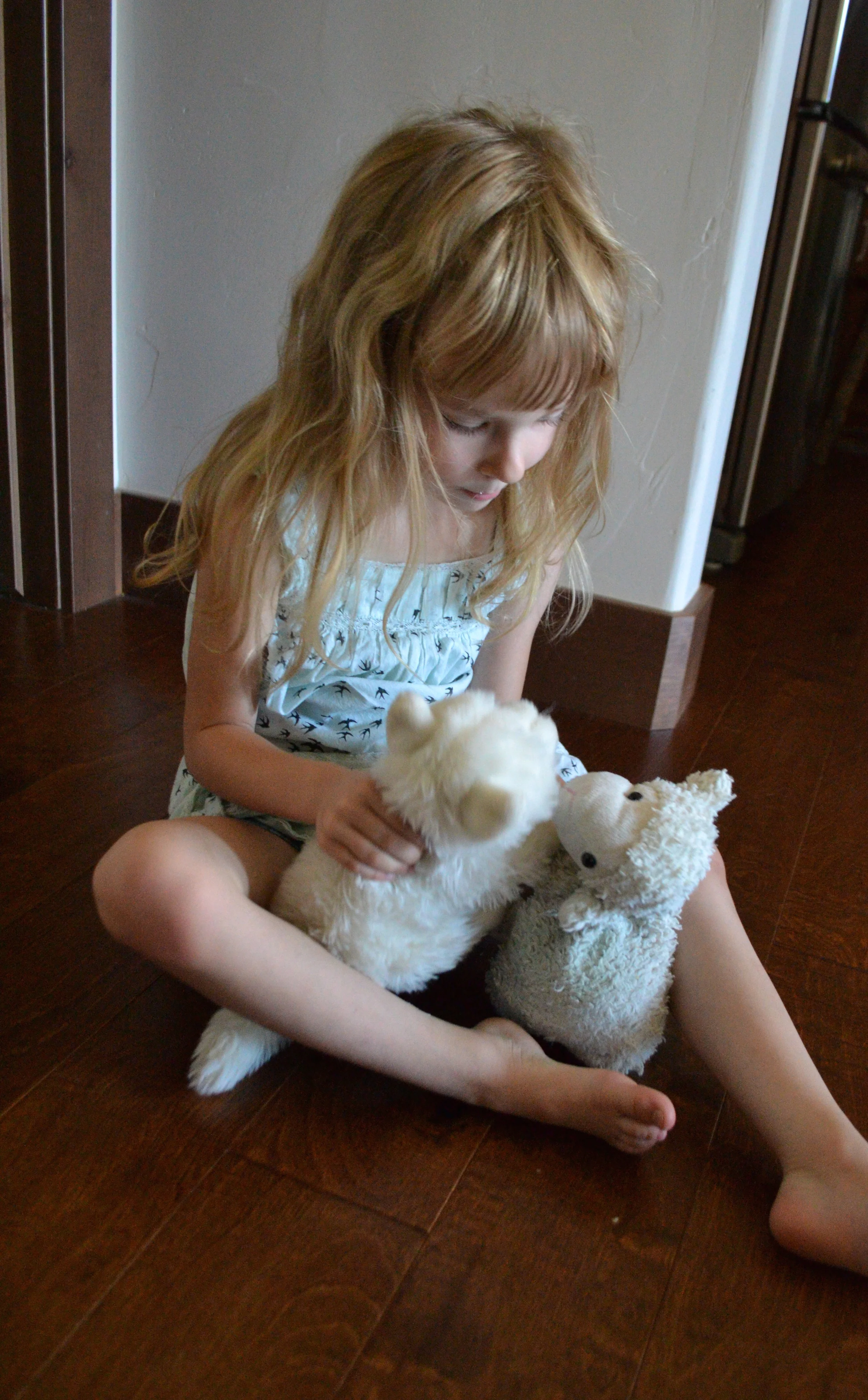 When we packed up our Albuquerque house, SIssy's favorite toy, Lambykins, got packed up by mistake, too. She's been remarkably mellow about it. (It helped that her Daddy got her a new stuffie, a kittie she named Bun-Bun Sweetie.