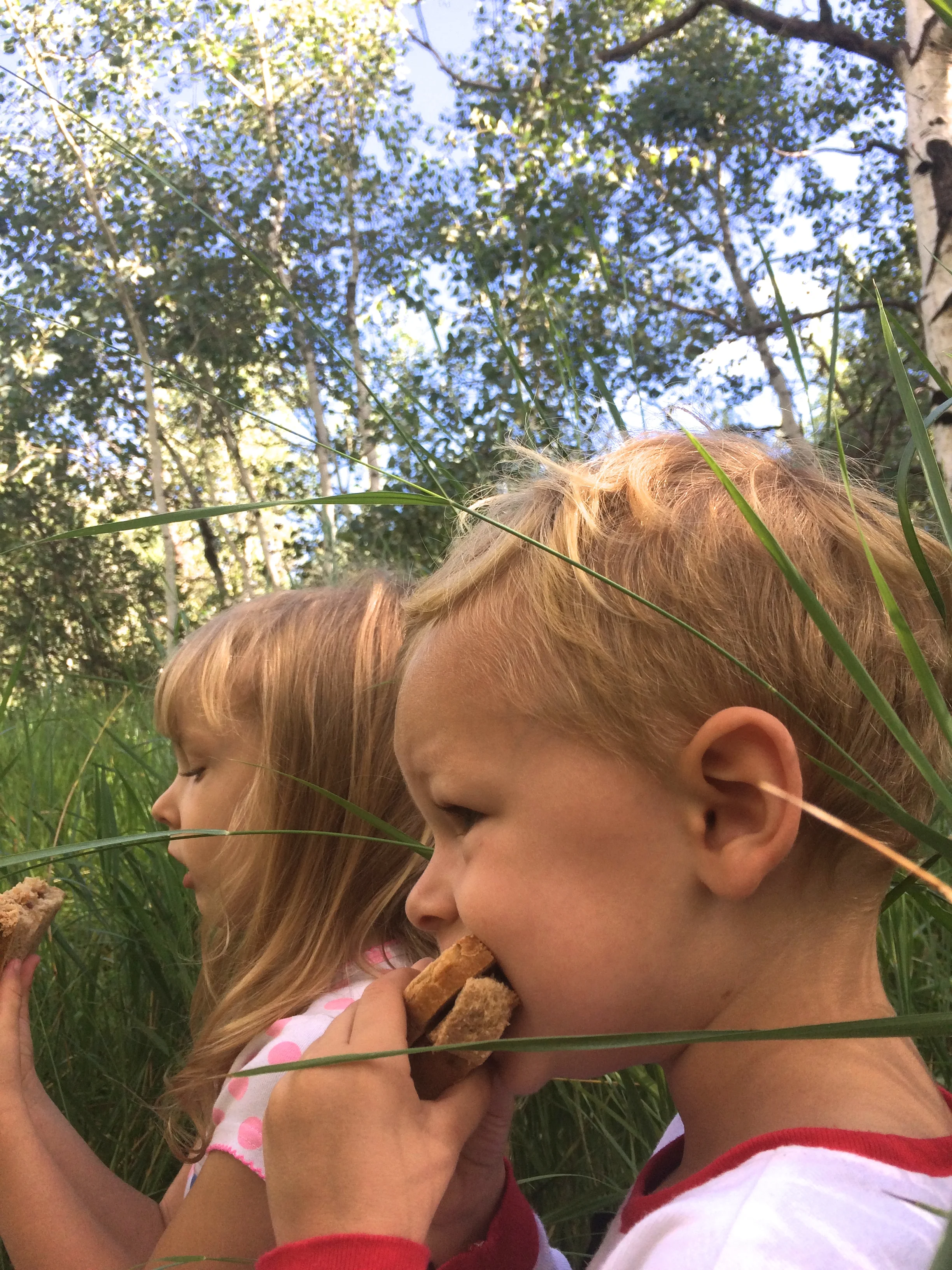We used to get up early and go on "pajama hikes" in ABQ 1) because it was too hot to hike unless you went first thing, and 2) because I am terrible at getting people out of the house in a timely manner, and not having to get dressed hugely speeds up the process. This was our first pajama hike in Steamboat, up the ravine behind our house to this beautiful grove of aspens, grass tall, birds chirping. Kids are such good hikers and they took an AMAZING nap this afternoon...