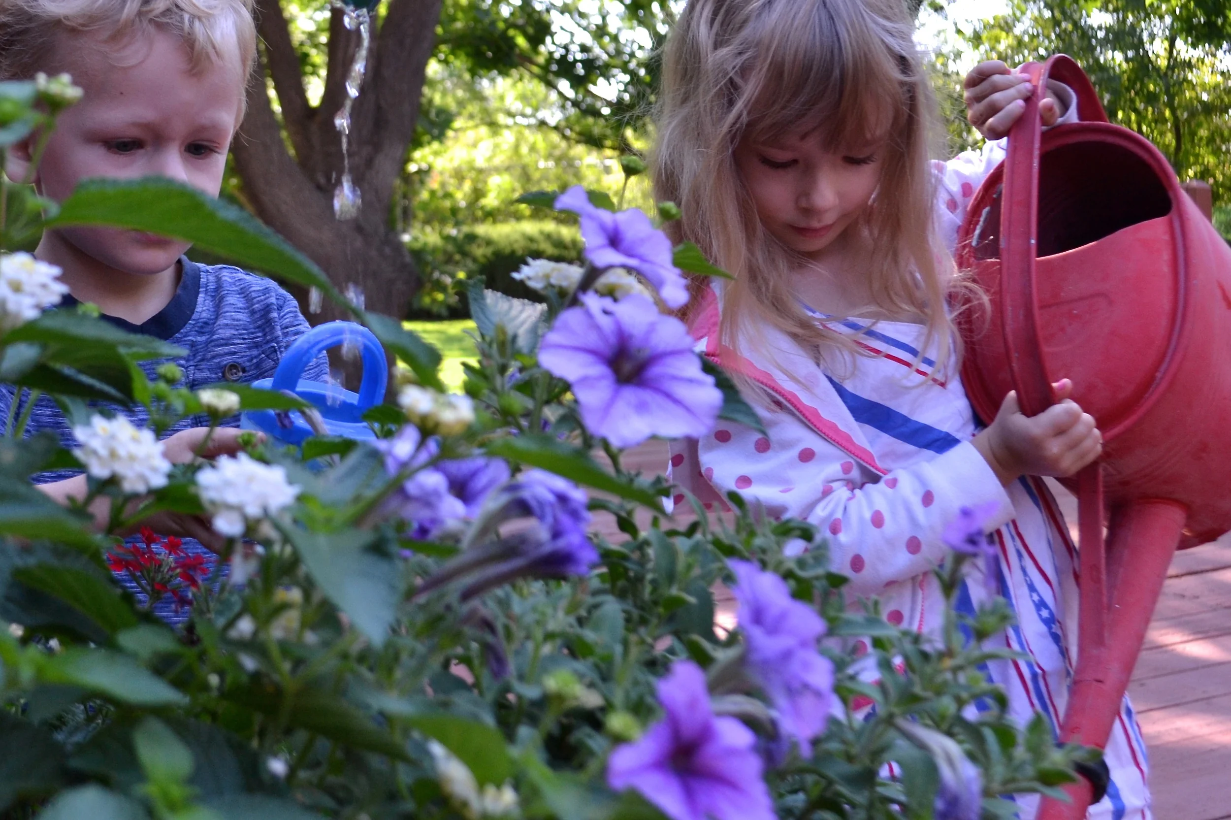 Luke and Zo help water