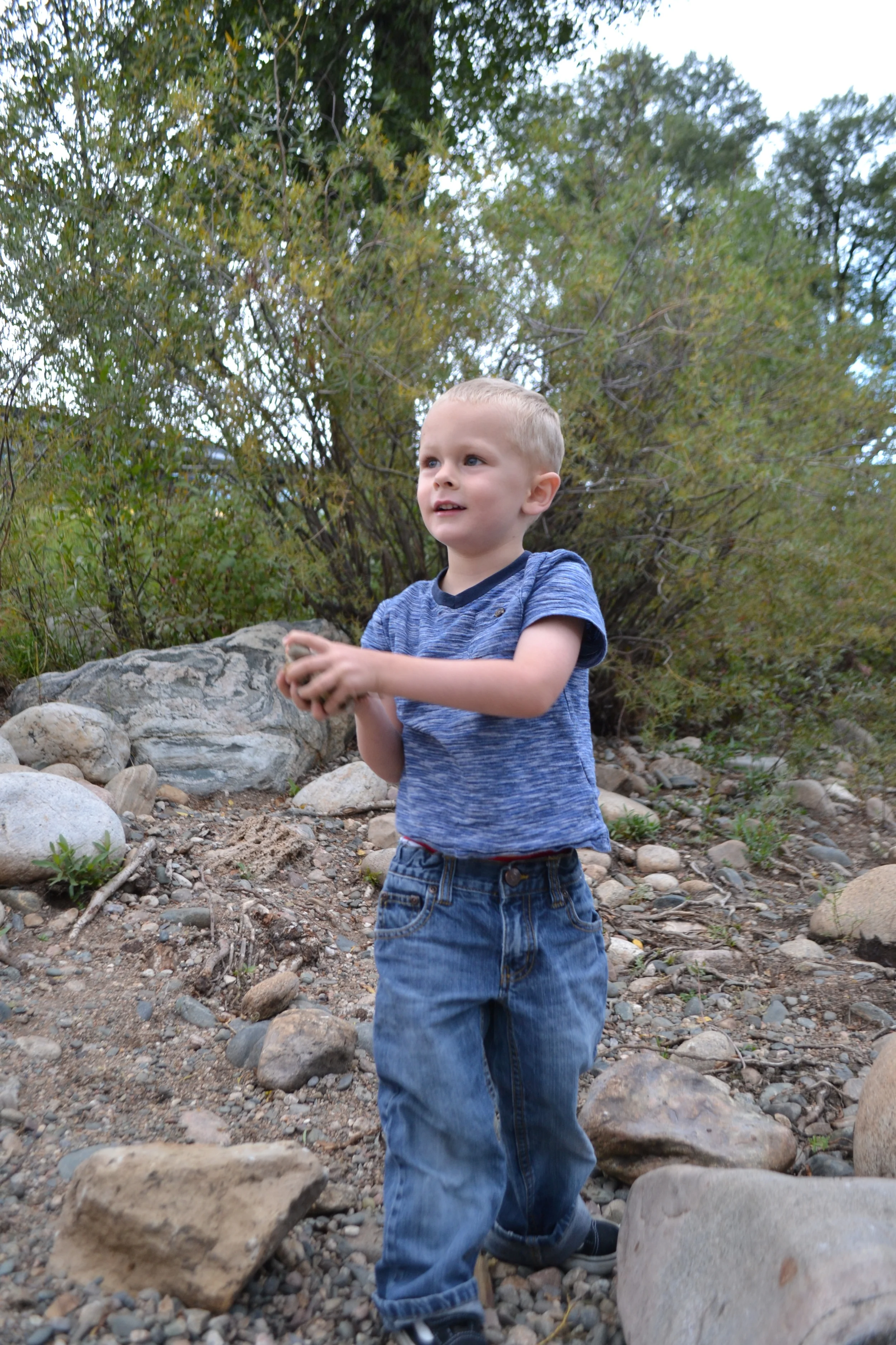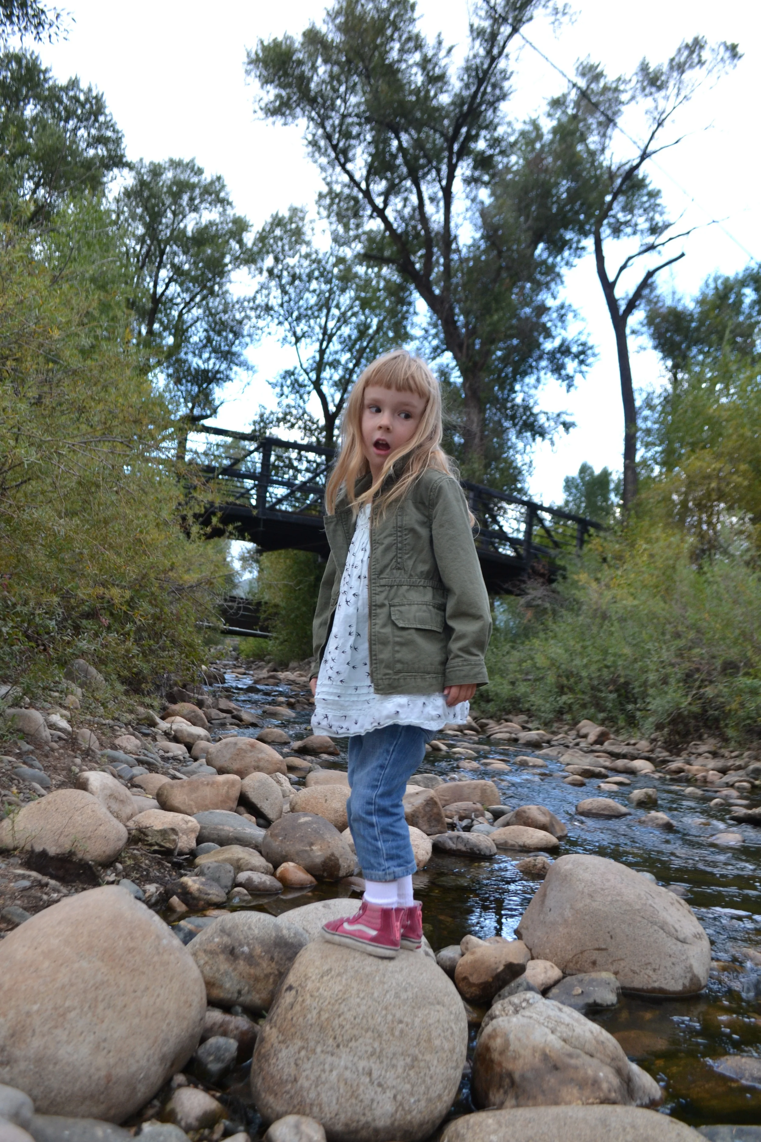 Throwing rocks into water is our new favorite past time...we had a few minutes before our nature film started at the library and the little creek beside the library was just perfect.