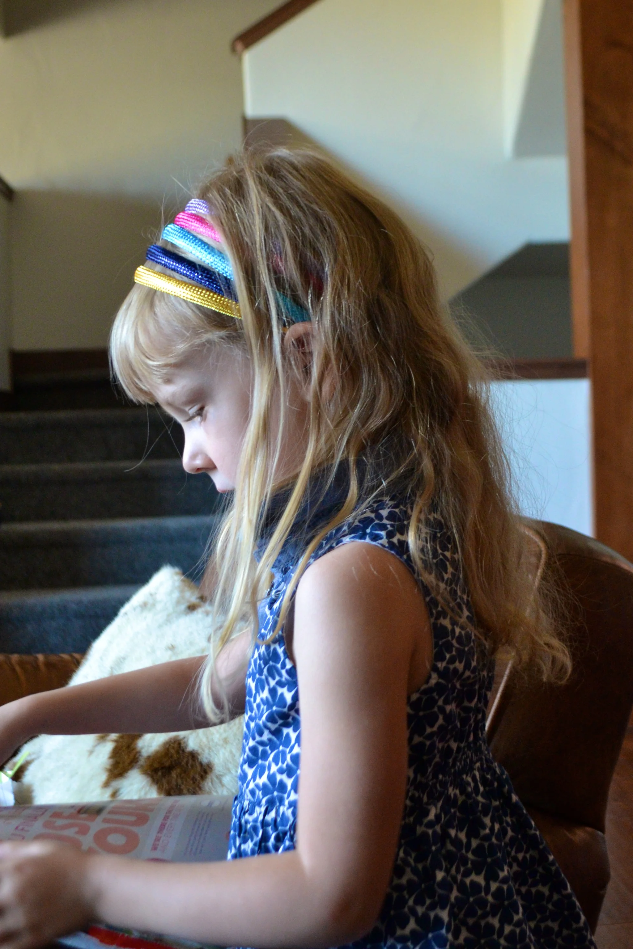 You are such a delight at 3 1/2. You remember everything. You love to read...me reading to you and if you can't nap you will sit in your bed for hours with a big stack of books, looking through page by page. You love your stuffies, especially Wolfie and Lambikins and Bun Bun Sweetie the kitty and Gugie the pig. You like to pick out your clothes the night before, and wish I'd let you wear your pink spiny dress every day. You want to open a bakery with your brother when you grow up, called the Monster Bakery. You carry around a little robin's egg blue bound book into which you've drawn pictures and call yourself an artist. You pick things in nature...flowers, leaves, sticks, and bestow them as presents on me. You love to be outside, hiking and biking on your hot pink bike, going for walks, throwing rocks in the river. You've adjusted well to our move and are starting to settle into Steamboat life, with trips to story and craft hour at the library, to the beach in front of Daddy's hotel, to the hiking trail in our backyard, to the botanic gardens and all sorts of other spots. The crafts you make--and making them is one of your favorite things--you are lining up on your windowsill, so very proud of them. You love your mommy and daddy and Me-Ma, your Grammy and Papa and Uncle Ben and Aunt Jaimie and Bodie and Bailee. You like your cartoons with breakfast. You eat really well--sometimes--at least you can generally be counted on to eat some fruit and vegetables and meat. Your favorite is peanut butter and honey. You love playing make believe with your brother--your favorite is "Elsa and Anna." You are starting to be more independent, I don't have to watch you every second, like the other day you sat on the porch on your own and read books for 45 minutes. You love your costumes and will often come down in the morning dressed as a cowgirl or a construction worker or a princess. You sleep great at night, although you tend to go to bed late, 9:00-ish these days. You still take a nap most days and are cranky if you don't. You are super sweet to your brother, calling him "My Luke" but can also bite and hit and pinch when he does things you don't like. You can whine like crazy when you want to. You can be defiant. But mostly you smile and laugh and play and fill this house with light and love. We love you dearly, our little princess.