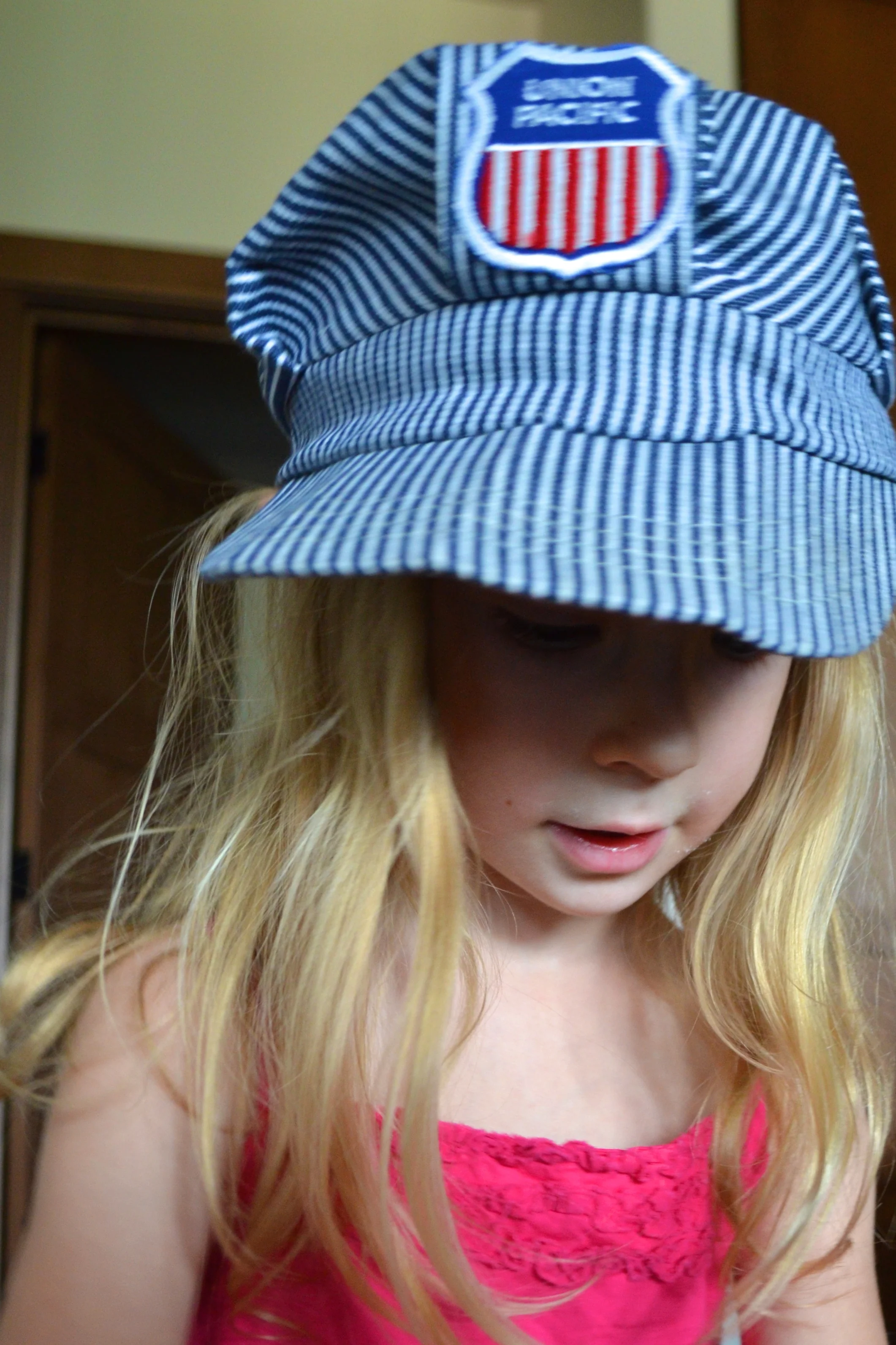 Dress-up is big these days. Here's Sis in a railroad hat and (not shown) construction tool belt and riding a broom like a witch.
