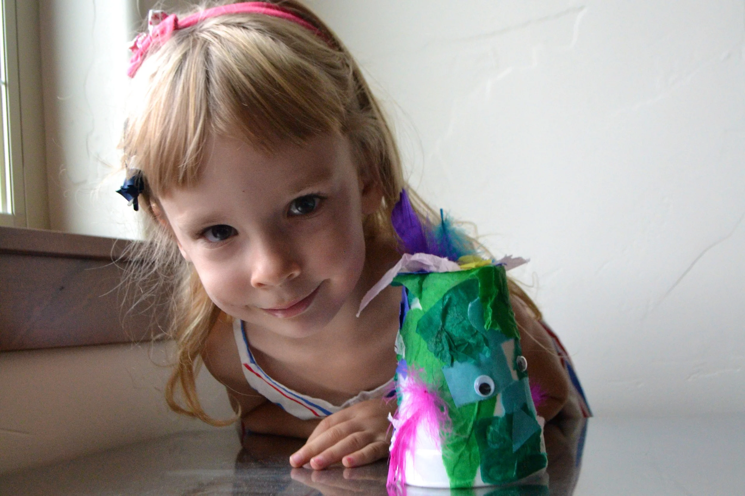 1. Story hour + crafts at the library today...the kids made the cutest little birds and had so much fun. "Mommy I love doing crafts," Zo said as she carefully glued pieces of green tissue paper to her styrofoam cup with Elmer's glue. Love it...