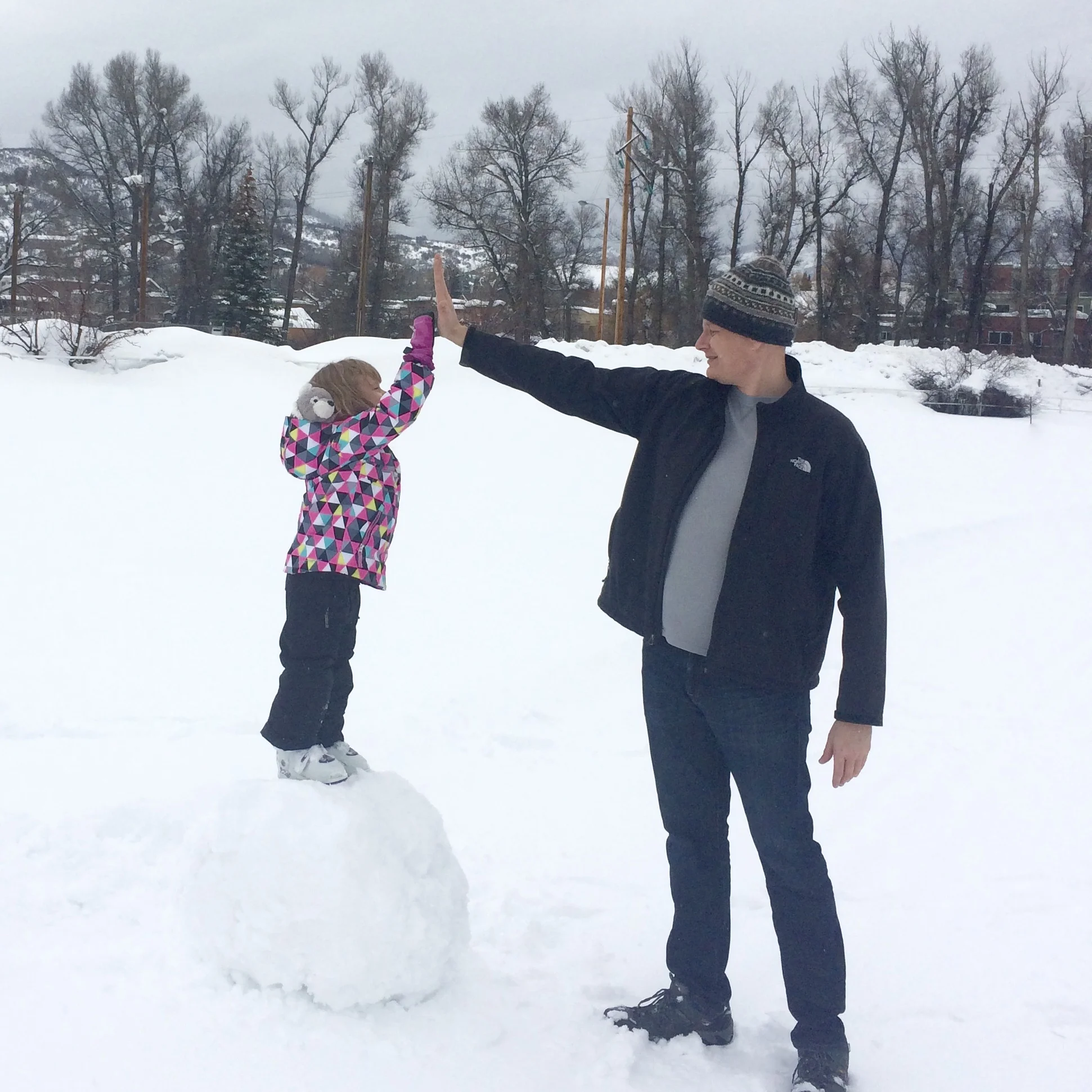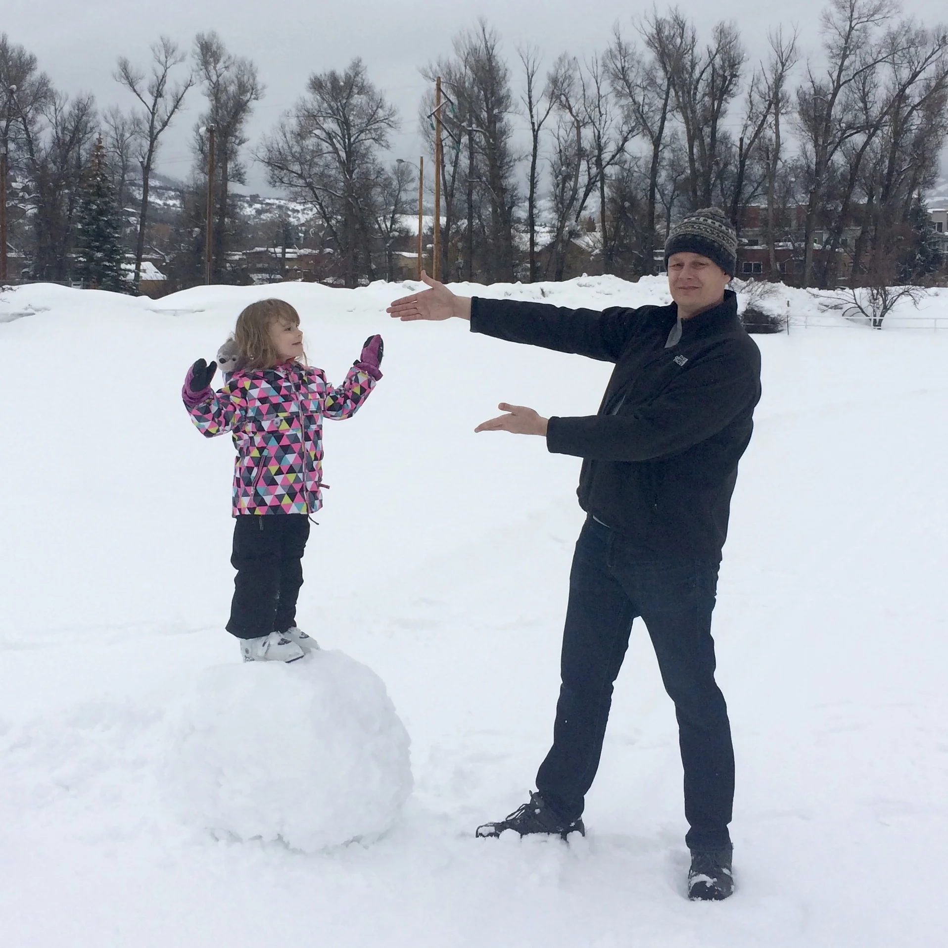- Daddy and Zo making a huge snowball at Howlson Hill this morning...