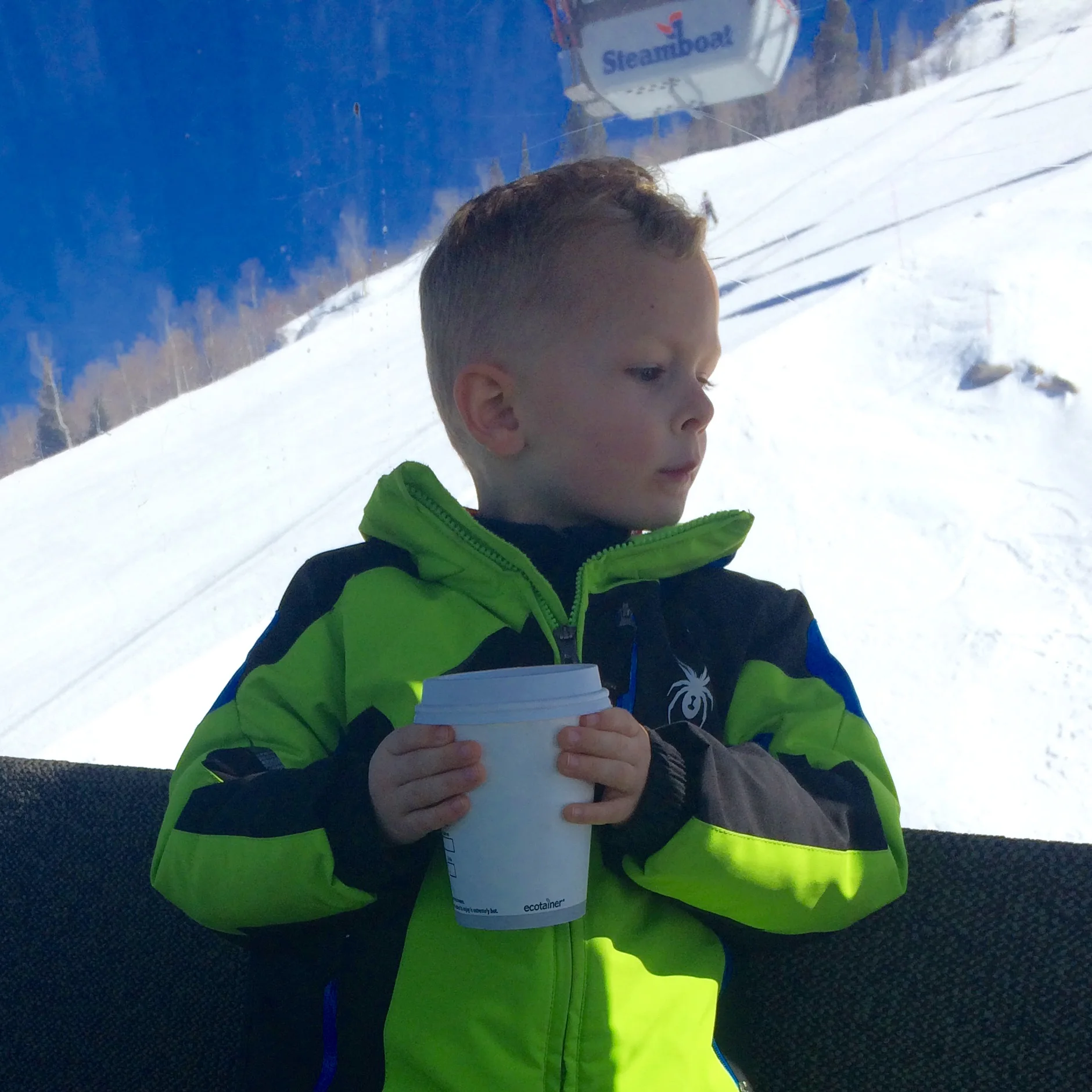 - I took both kids to the bunny hill today for ski practice...Luke in the morning, Zo in the afternoon...Luke and I rode up in the gondola after just for fun...got a hot chocolate at the top...drank it as we rode back down...