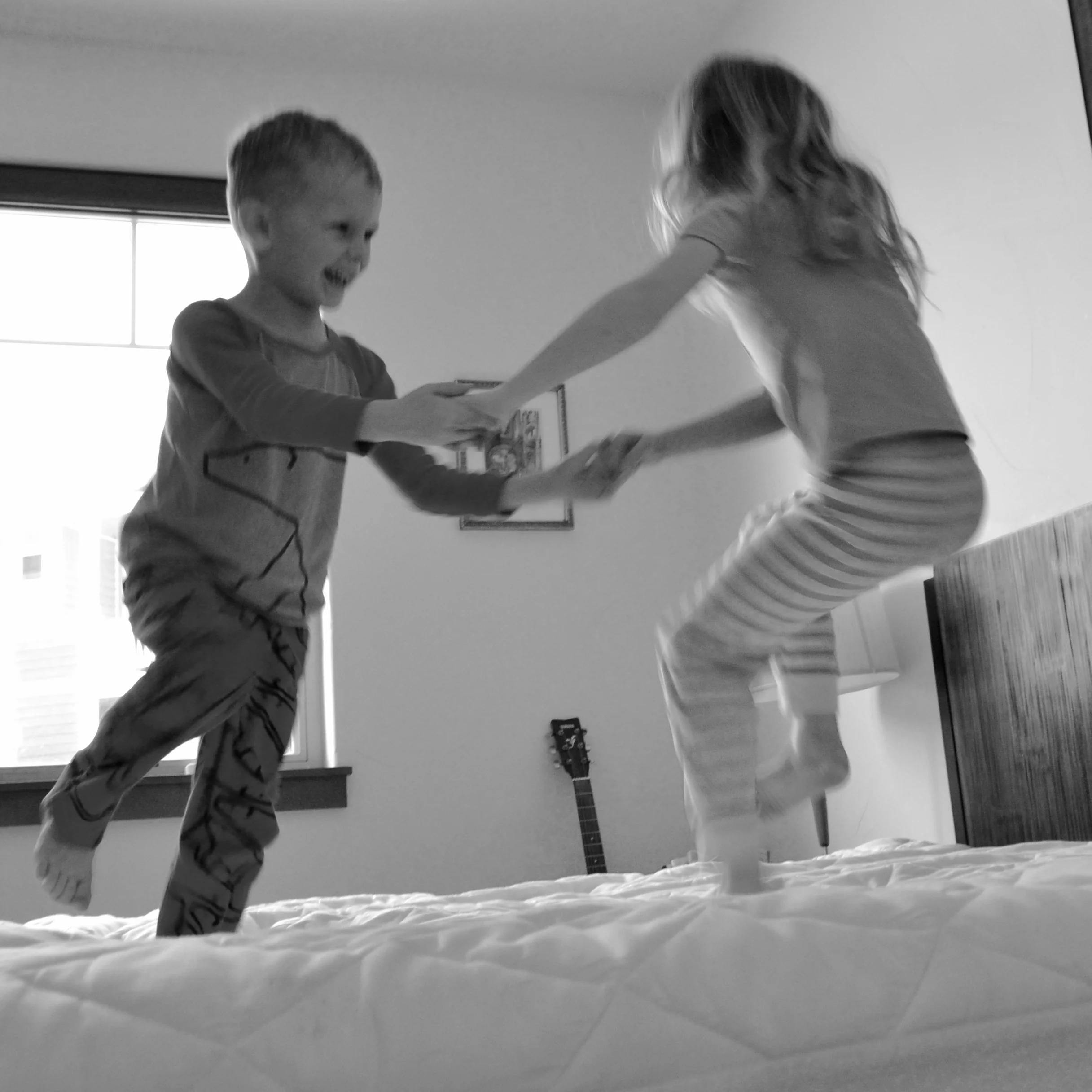 - Pajama Day for the kids...and they played beautifully together all day...ring-around-the-rosy and pillow fights on our bed while I washed the sheets, and hours with the elaborate wooden train set-up I made for them yesterday upstairs...