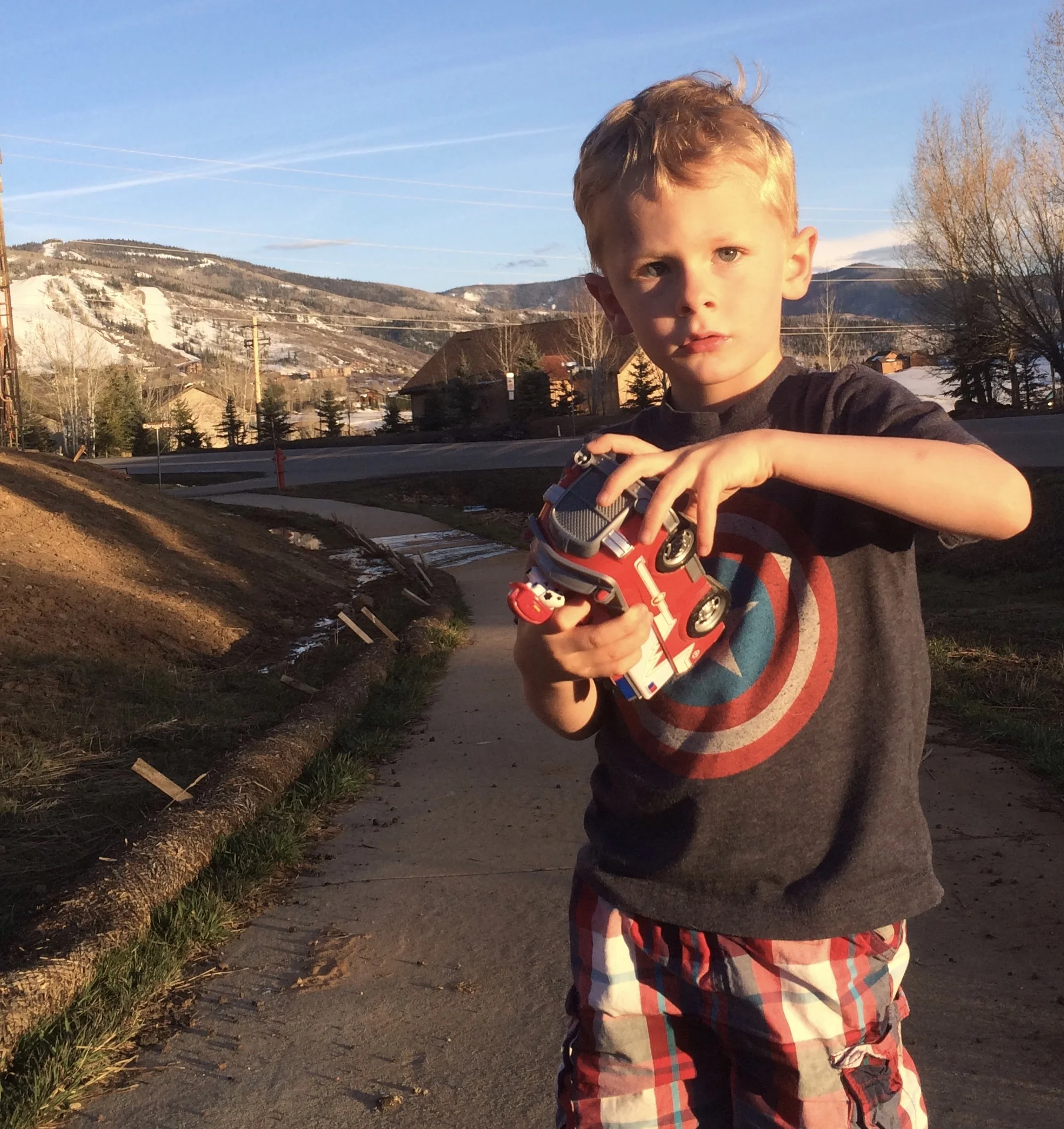 - Luke (with his fire truck) walking the dog with me in the very late afternoon light...love that light...used to be my favorite time of day to go surfing, so I could watch what the light did to the California hills...
