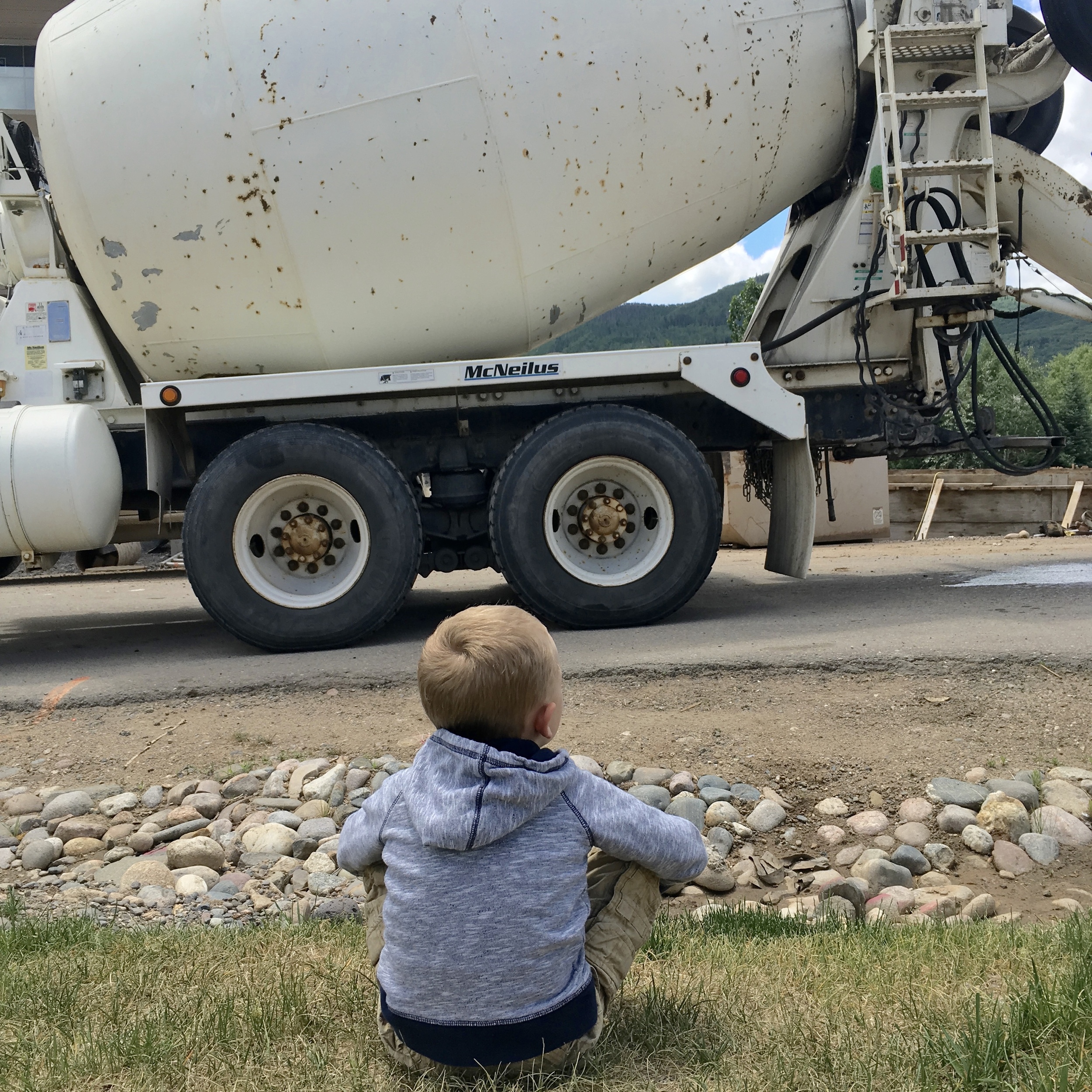 - Cement mixer/pourer were back today...Luke and Zo and I sat and watched...