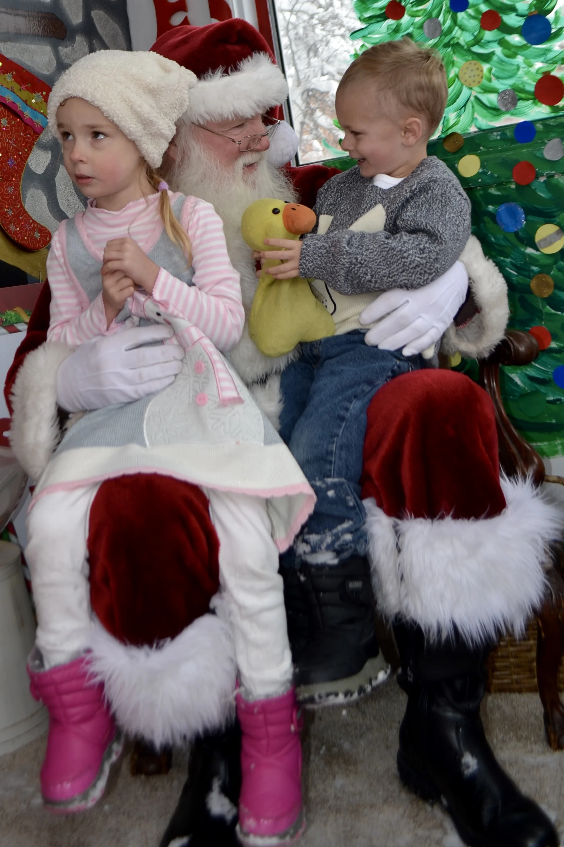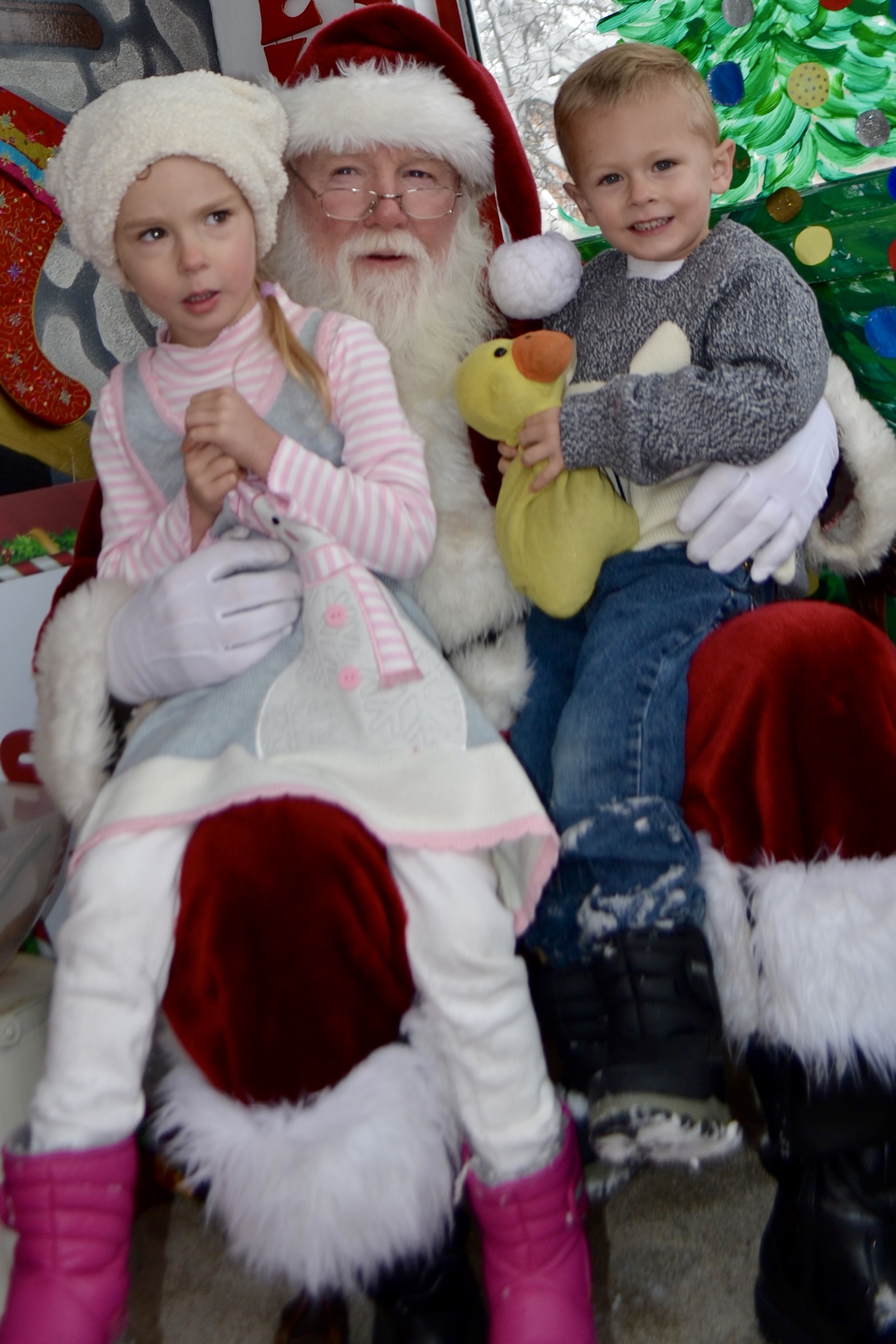 9:15 AM: Kids watch the snowplow make their snow mountain even bigger. Zo tells Mumpho Elphie she wants "a ballet dress with pink stripes for me and for Lambie. And another chocolate Santa please."