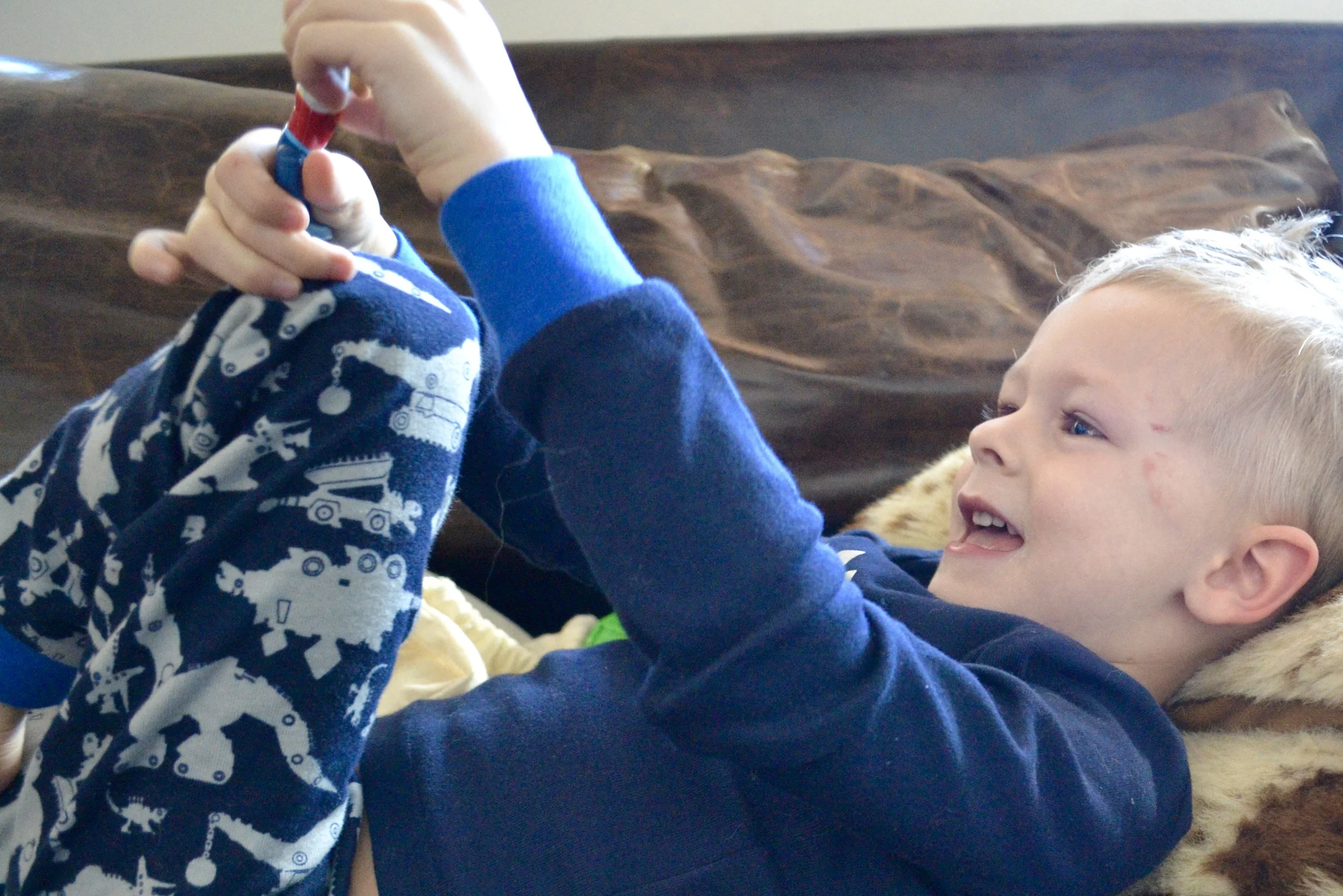 6 PM: Kids get letters and stickers (smiley faces, bears) from Grammy in the mail. I finish dinner while kids play "pirates" and then "pillow fight," which involves each holding a couch pillow to their chest and then running into each other from a distance, giggling hysterically, especially when one or both of them ends up knocked down.