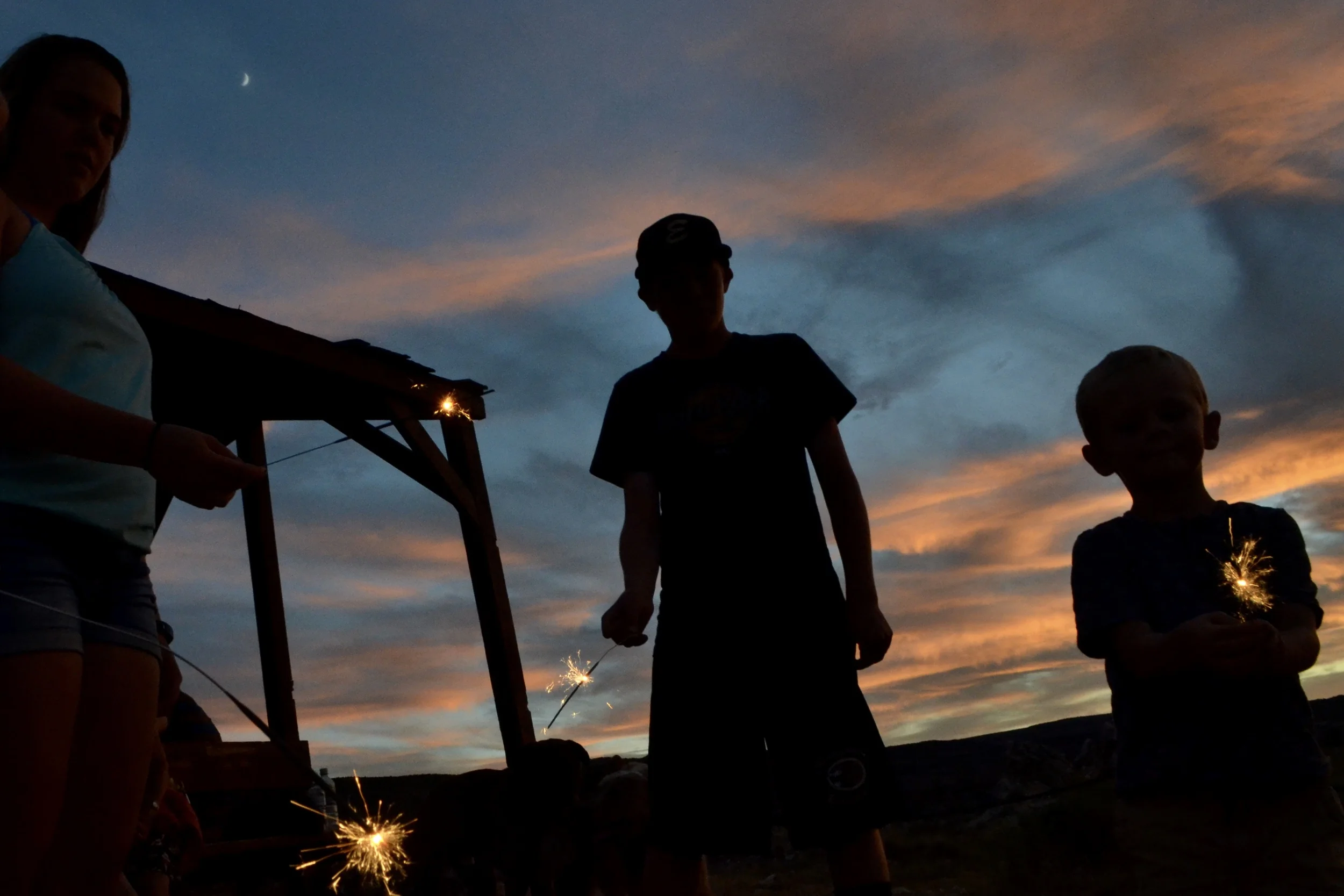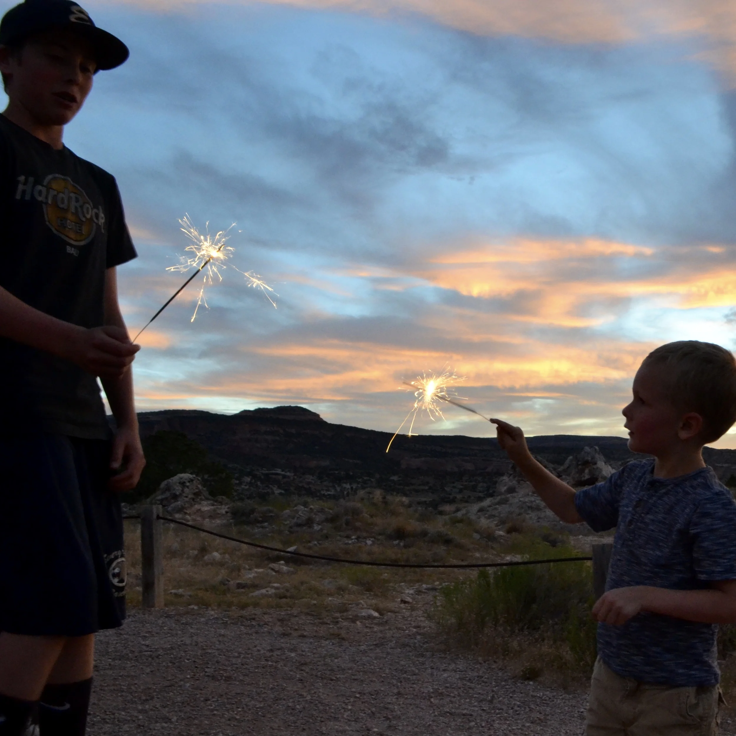 Sparklers + cousins, Dinosaur Hill