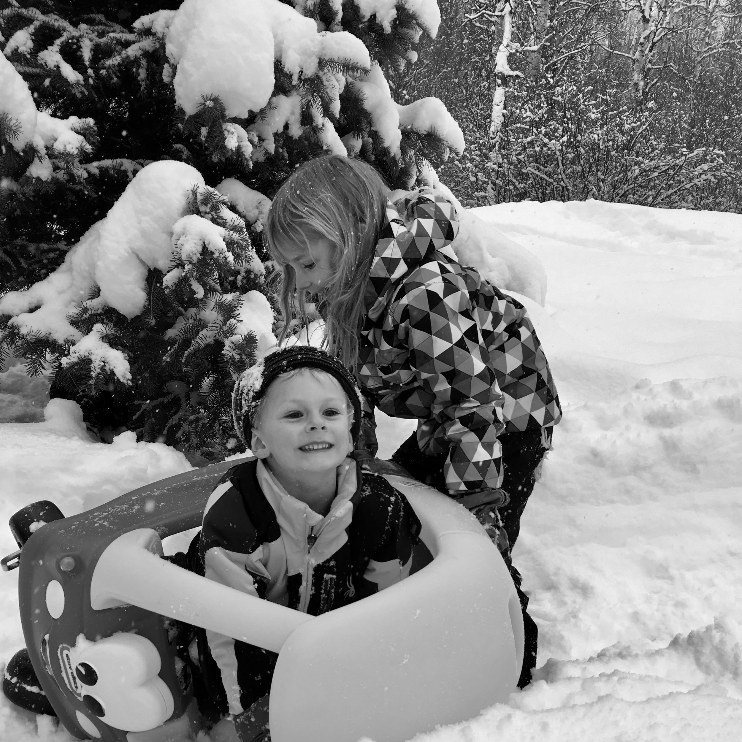 - Super fun playdate this morning...sledding and snowman building and trying to drive a play car in the snow and kids crawling under a tree into a little kids-only tree fort...love playing outside in the snow...