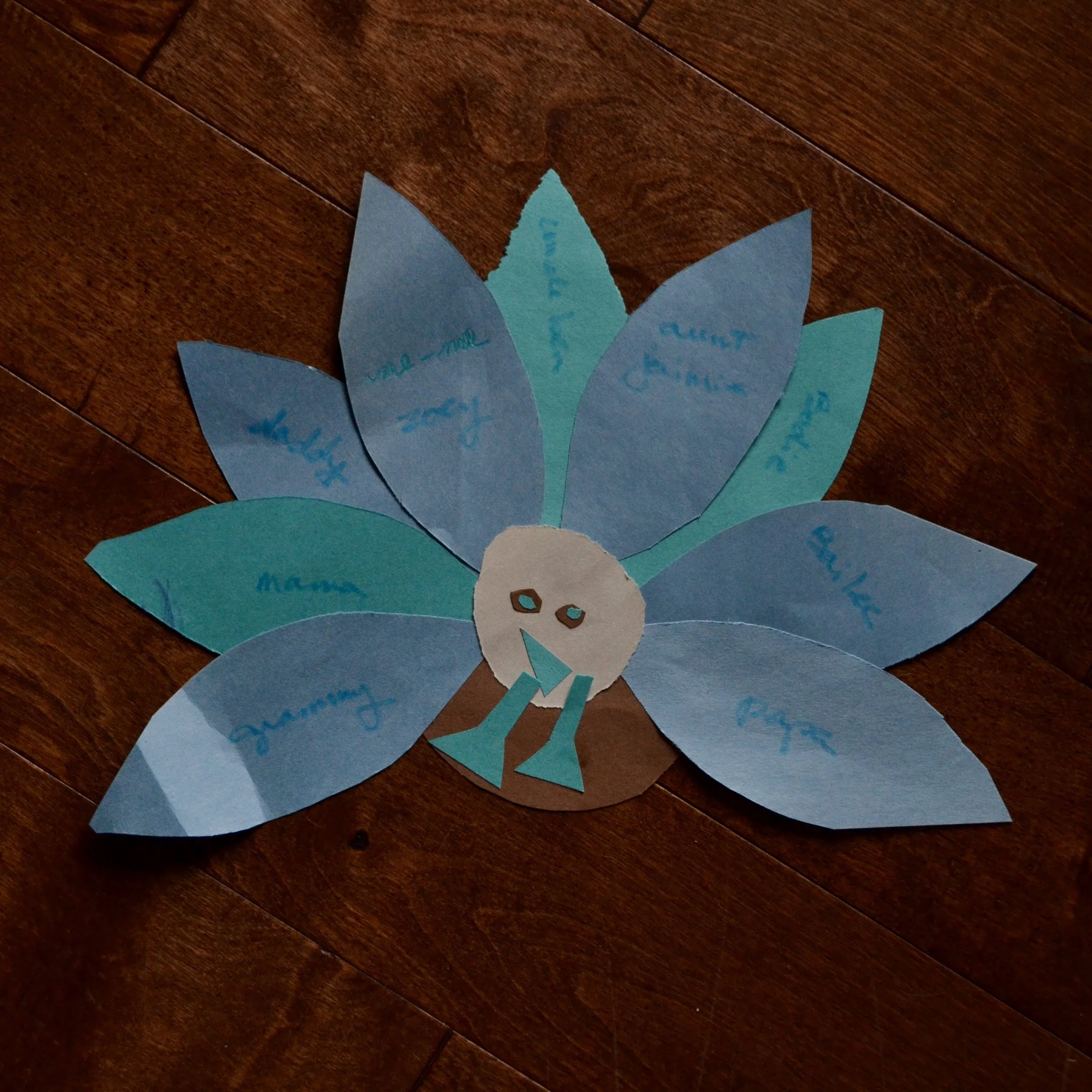 Love her flamingo. And Luke's Thankful Turkey...he did the feathers on his own, no prompting...
